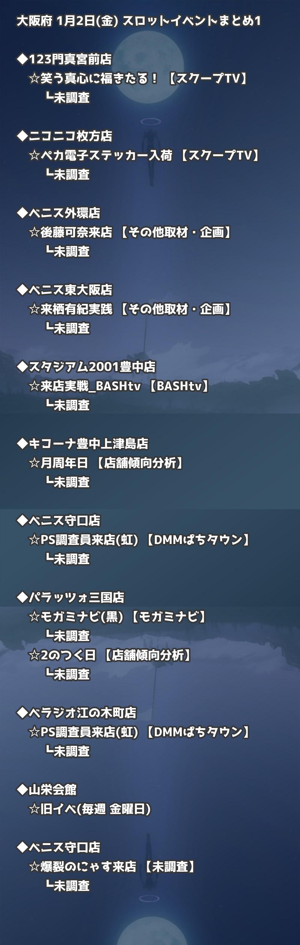 【大阪府】1月2日(金) パチンコホールイベント取材まとめ記事です。