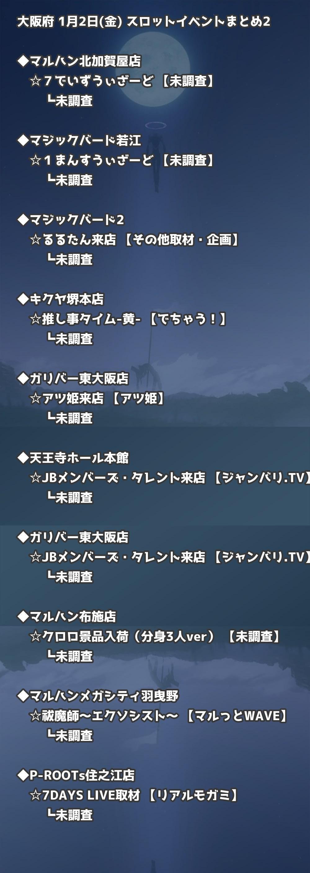 📊 大阪府 1月2日(金) 勝てるパチンコ・スロット取材店舗一覧|おすすめ順