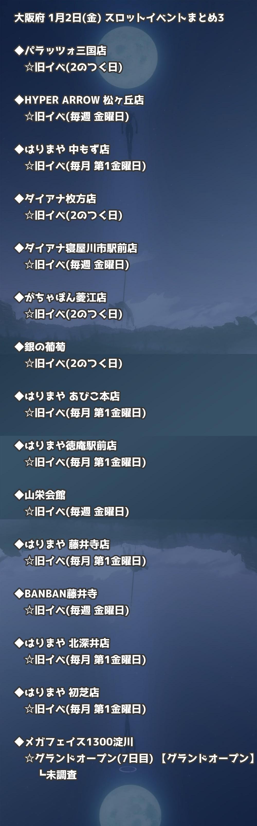 【大阪府】1月2日(金) パチンコホールイベント取材まとめ記事です。