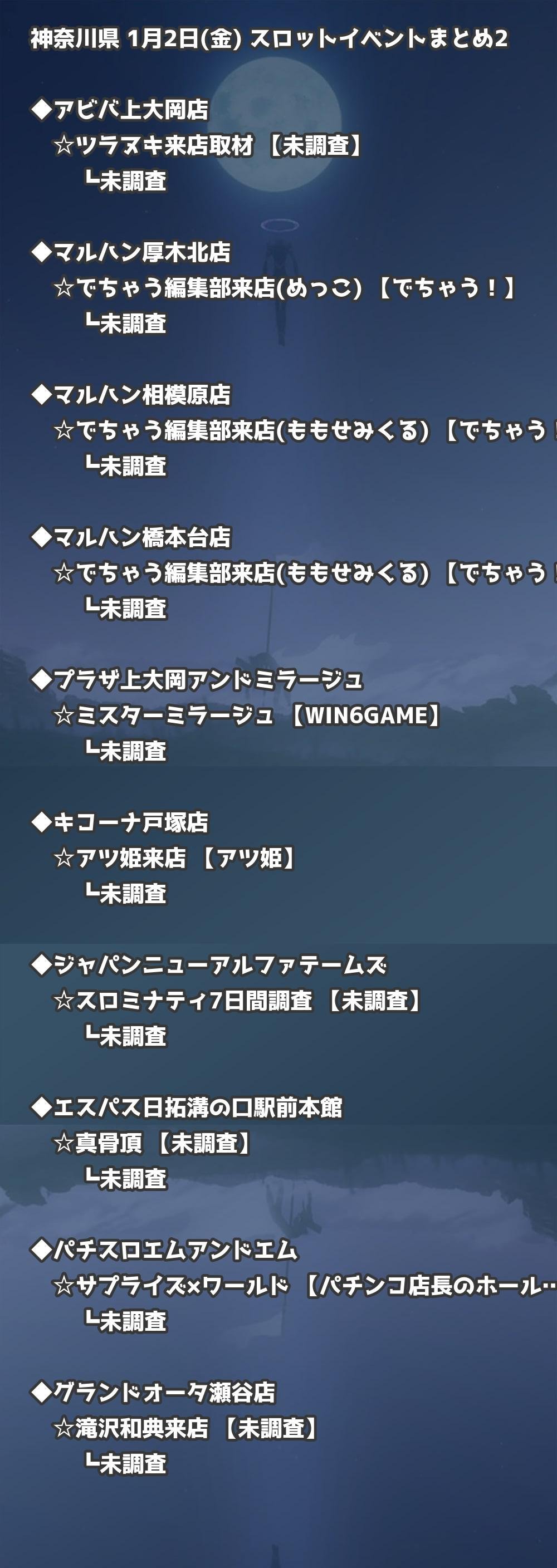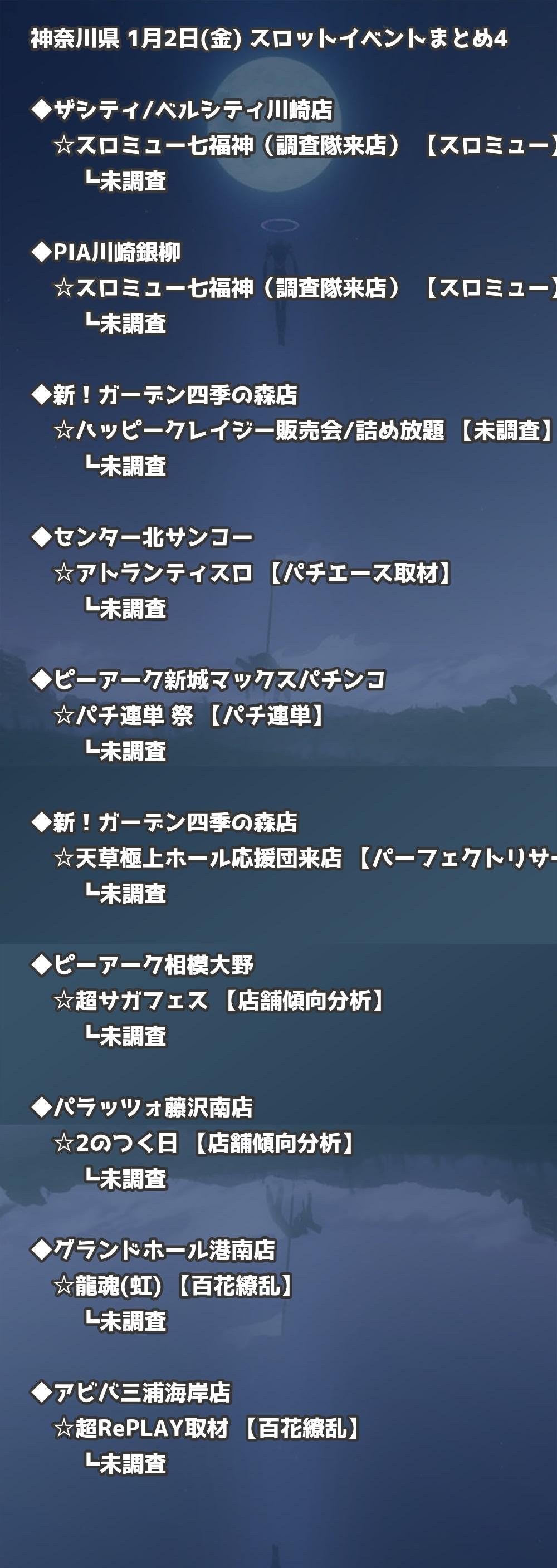 📊 神奈川県 1月2日(金) 勝てるパチンコ・スロット取材店舗一覧|おすすめ順