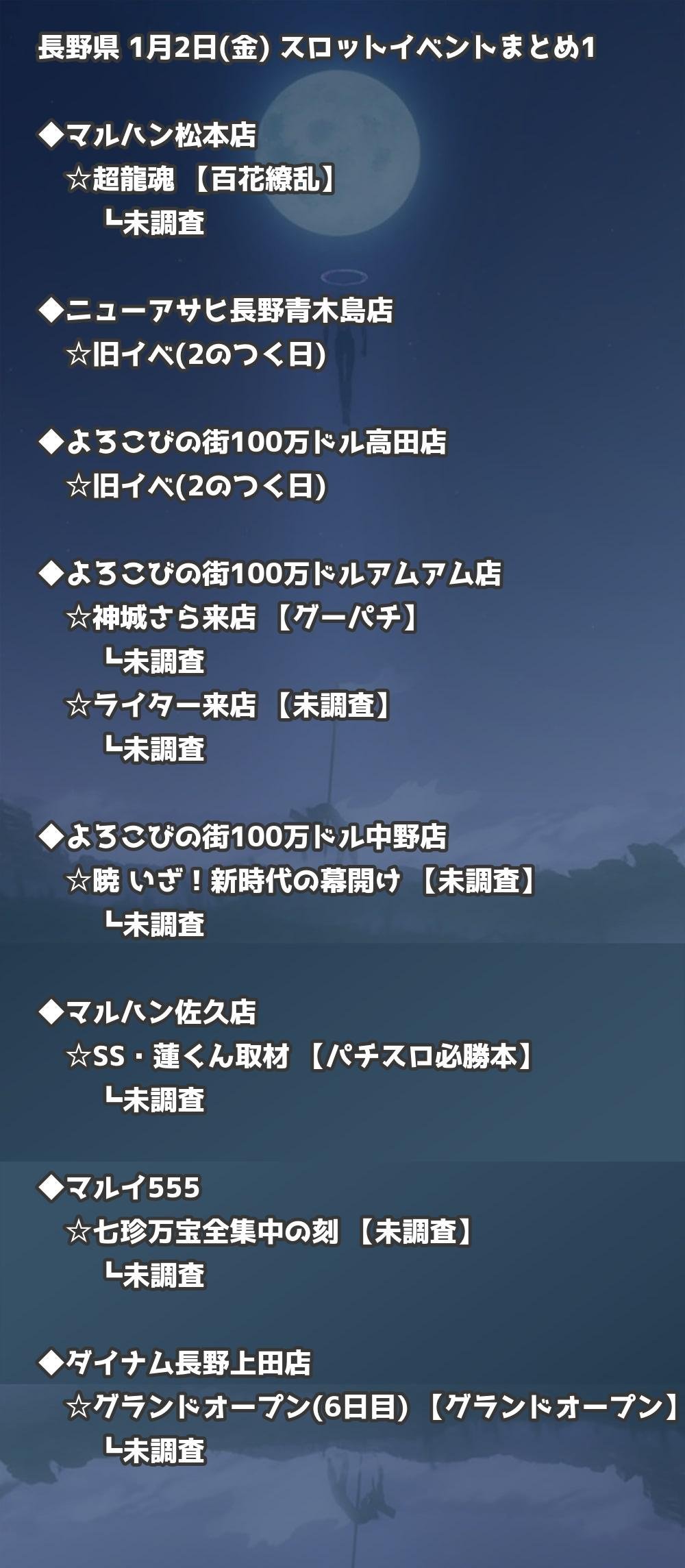 【長野県】1月2日(金) パチンコホールイベント取材まとめ記事です。