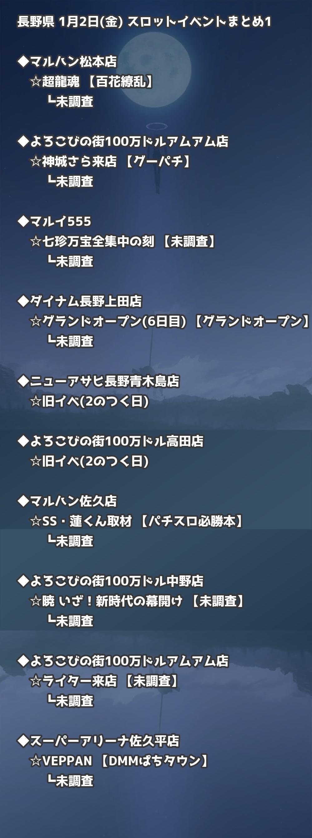 【長野県】1月2日(金) パチンコホールイベント取材まとめ記事です。