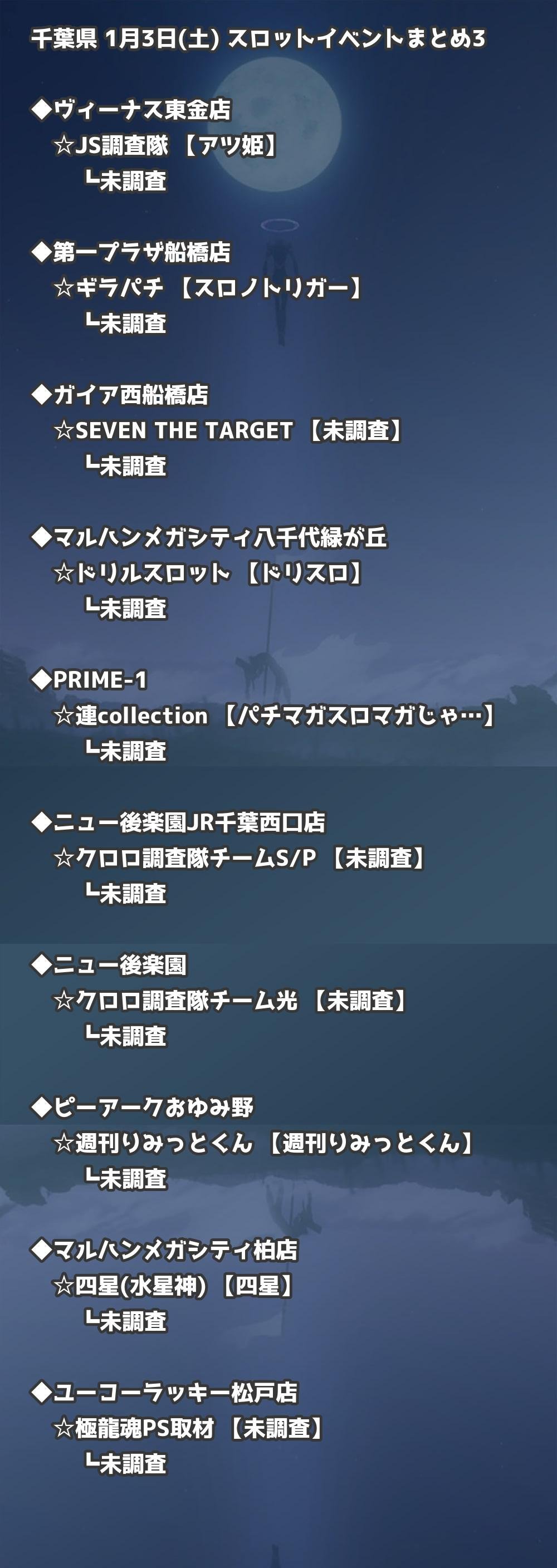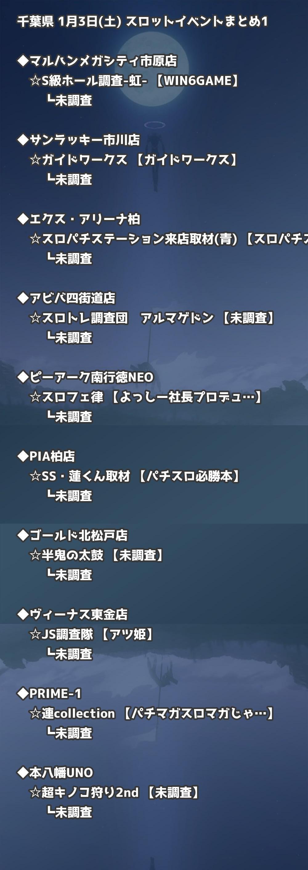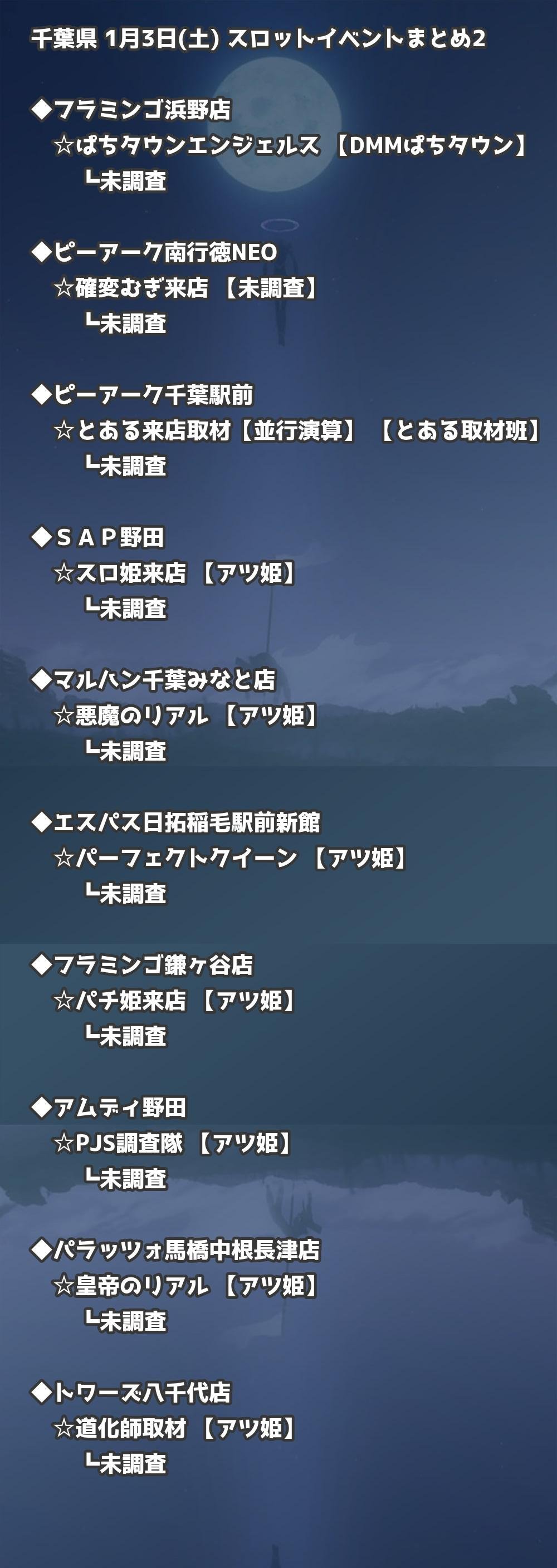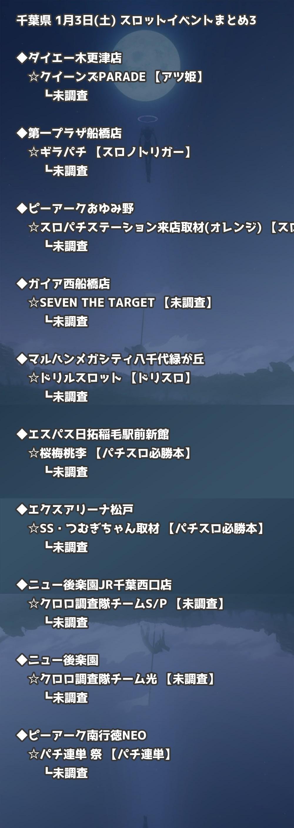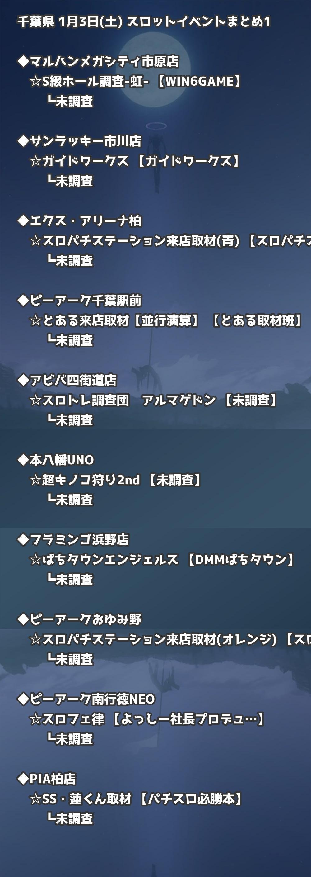 📊 千葉県 1月3日(土) 勝てるパチンコ・スロット取材店舗一覧|おすすめ順