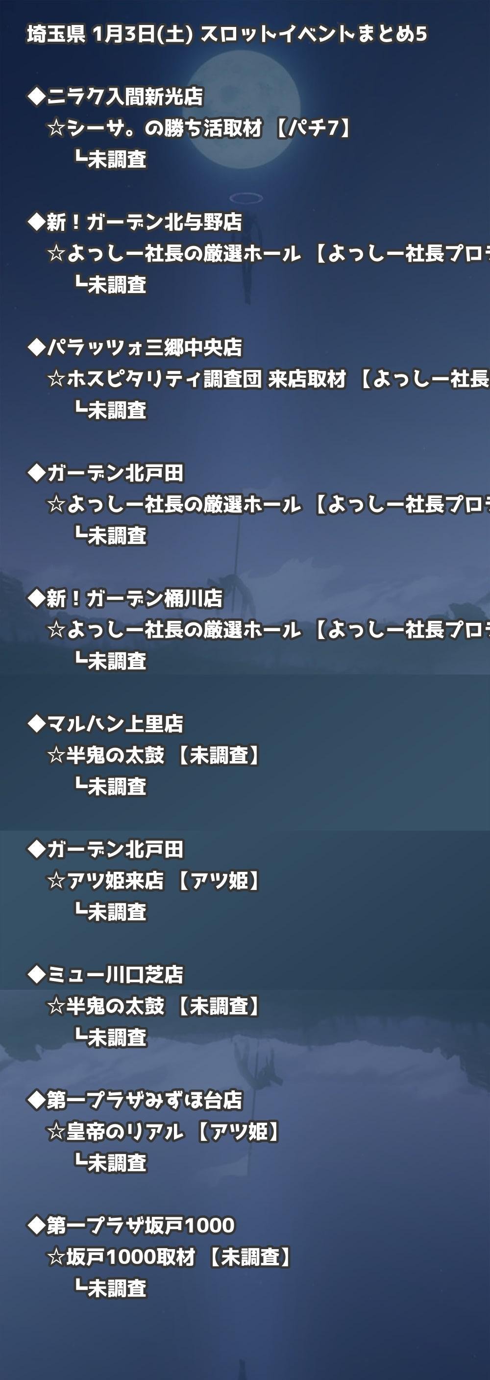 📊 埼玉県 1月3日(土) 勝てるパチンコ・スロット取材店舗一覧|おすすめ順