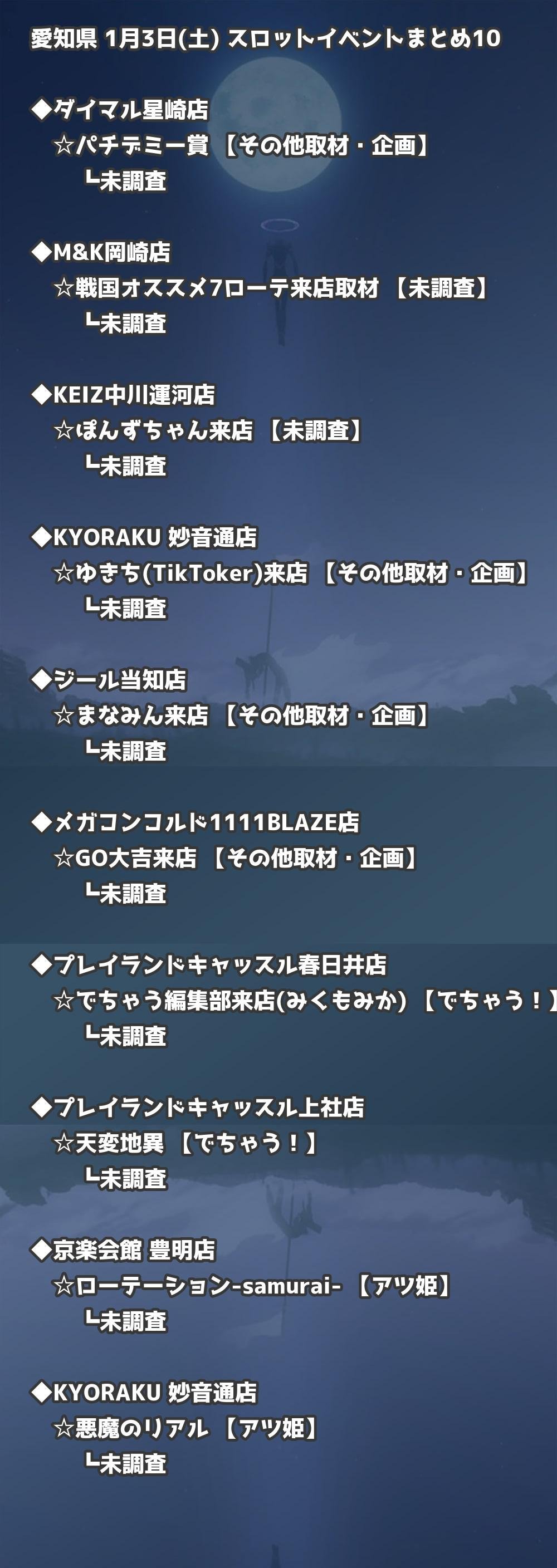 【愛知県】1月3日(土) パチンコホールイベント取材まとめ記事です。