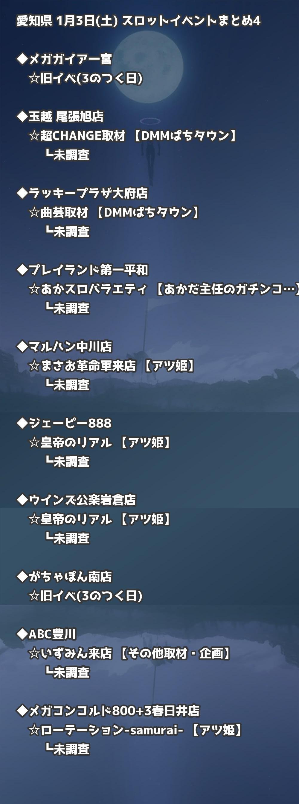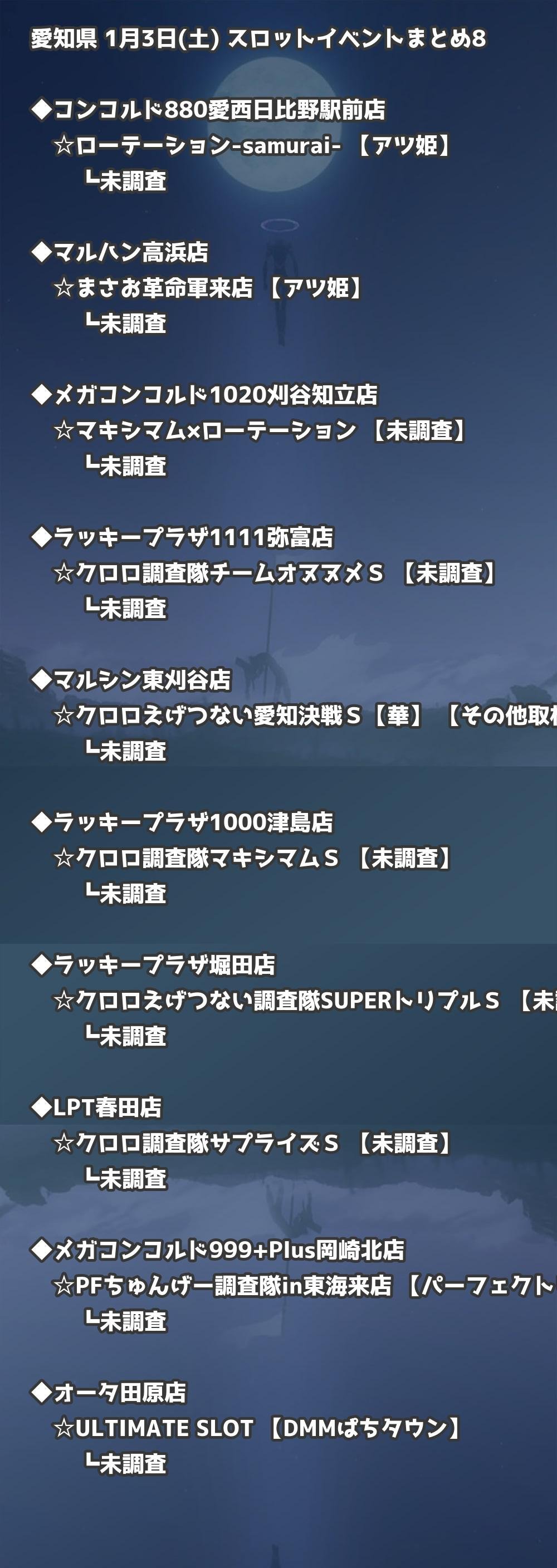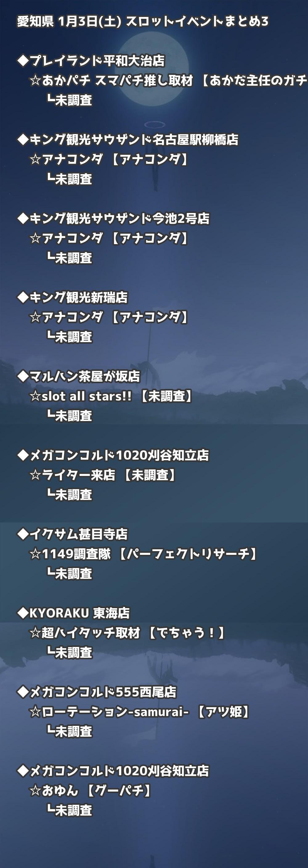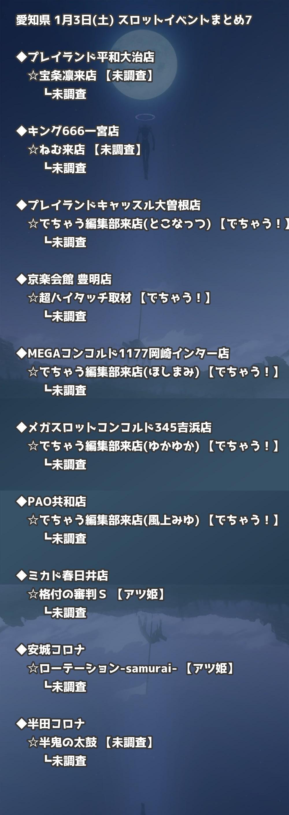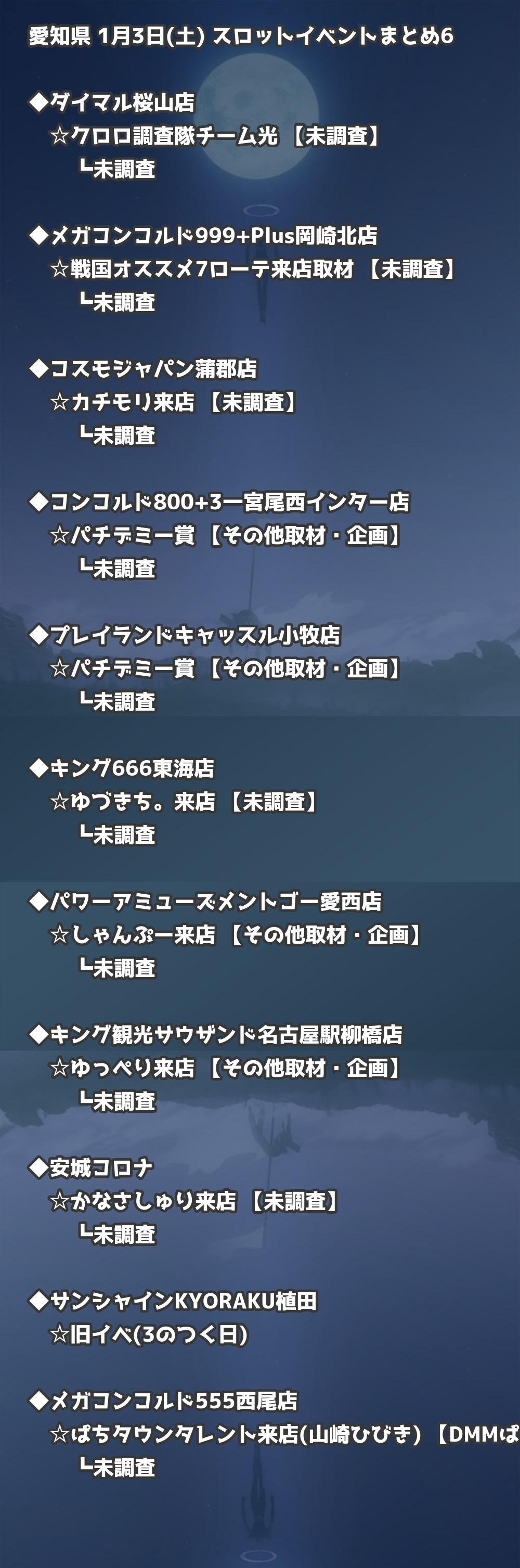 📊 愛知県 1月3日(土) 勝てるパチンコ・スロット取材店舗一覧|おすすめ順