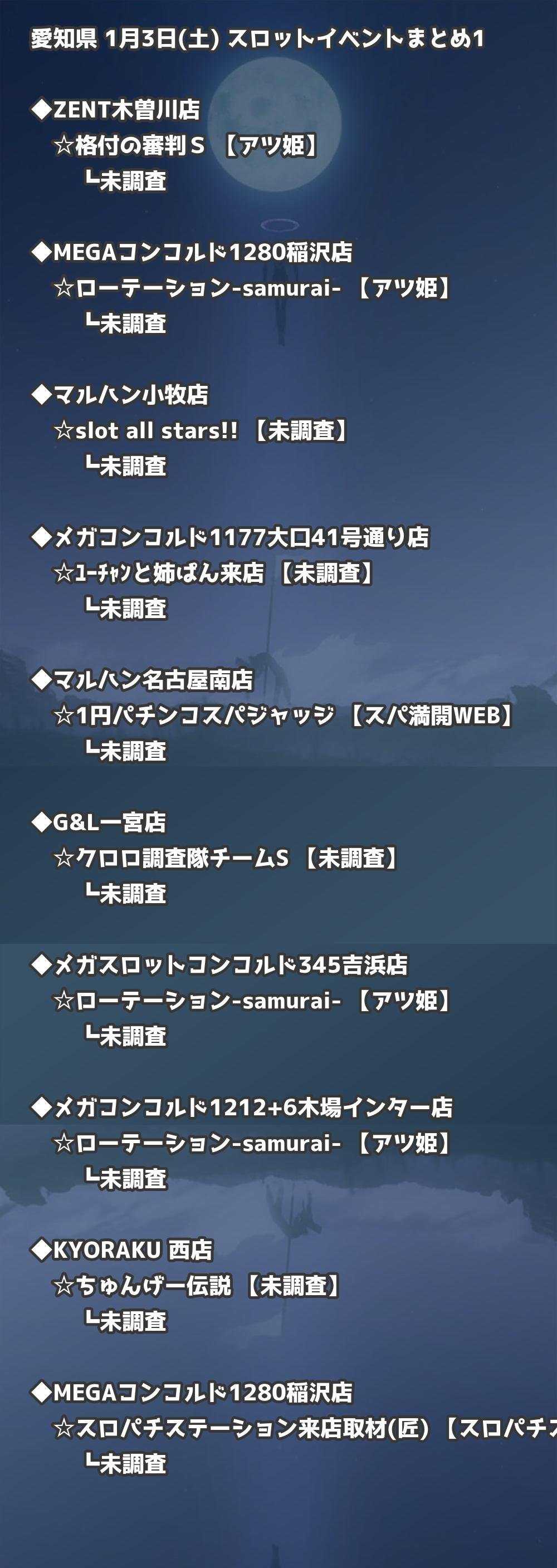 ※店舗結果掲載済 【愛知】1月3日(土) 今日のスロット・パチンコ激熱イベント取材まとめ