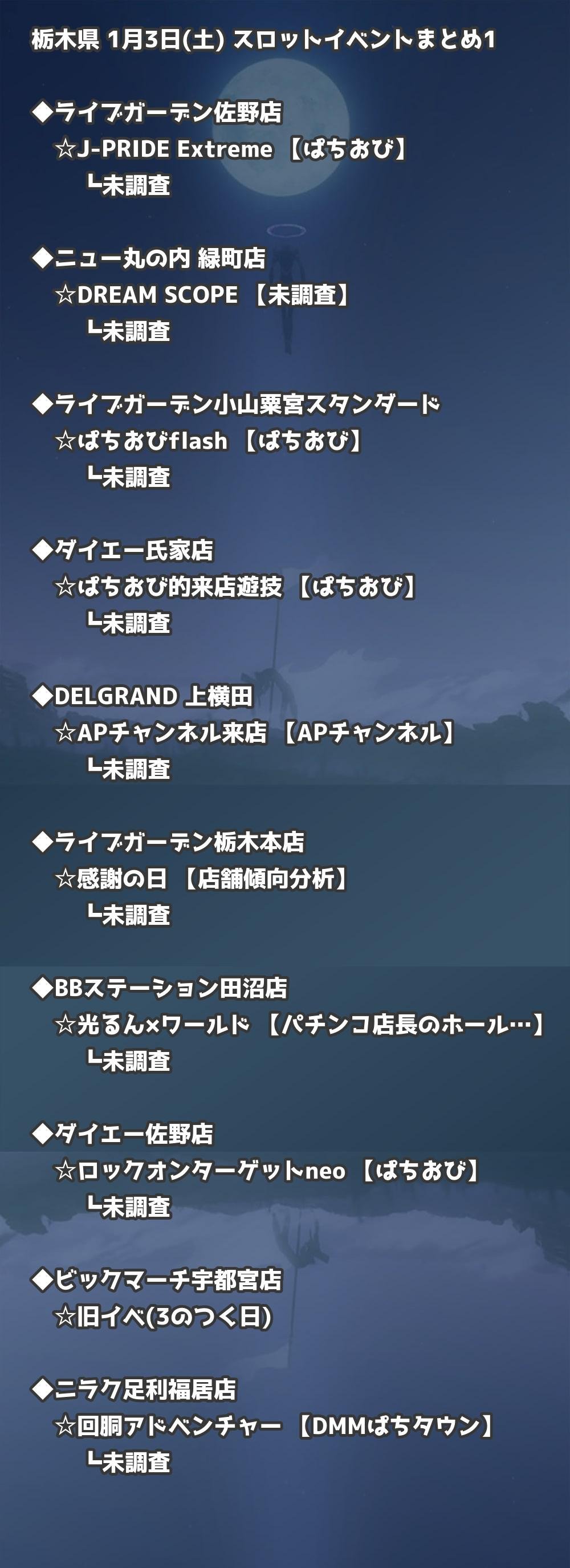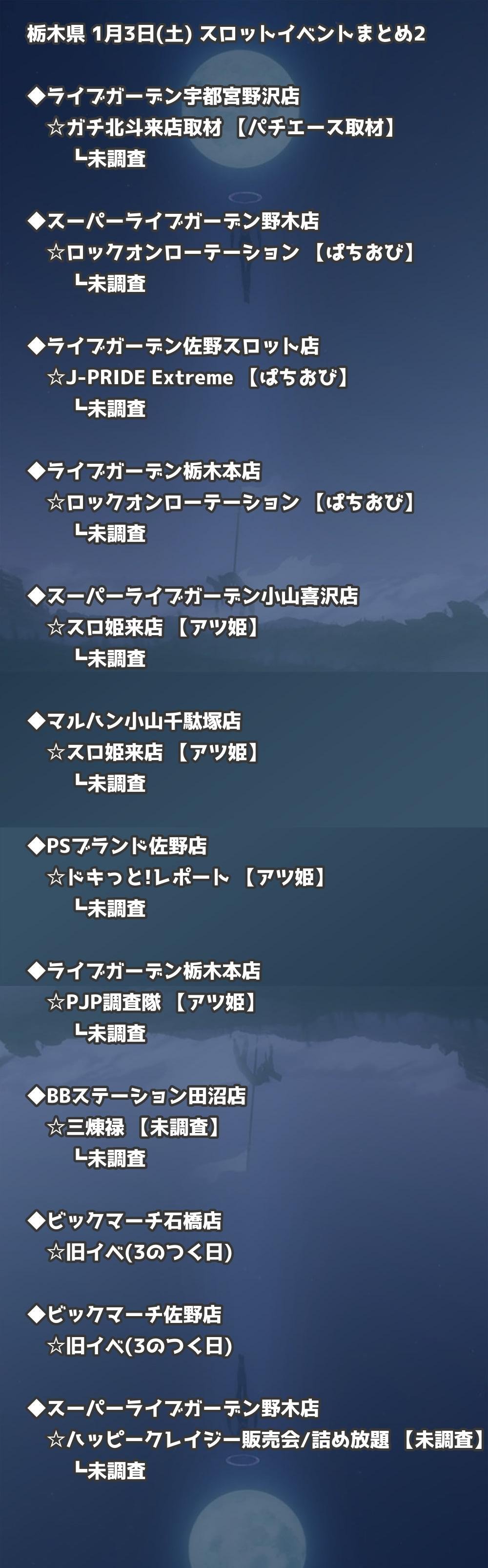 【栃木県】1月3日(土) パチンコホールイベント取材まとめ記事です。