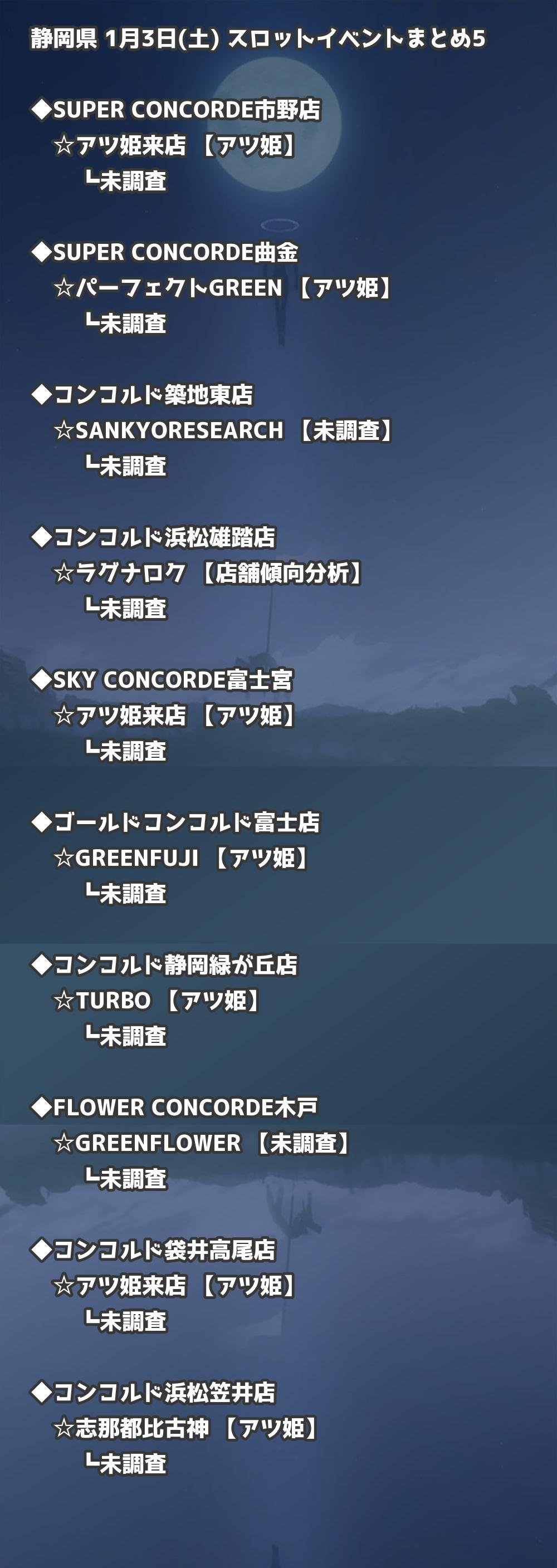 1月3日(土) 静岡県のTOP20の結果を掲載しています。タップで上位機種など詳細が見れます。
