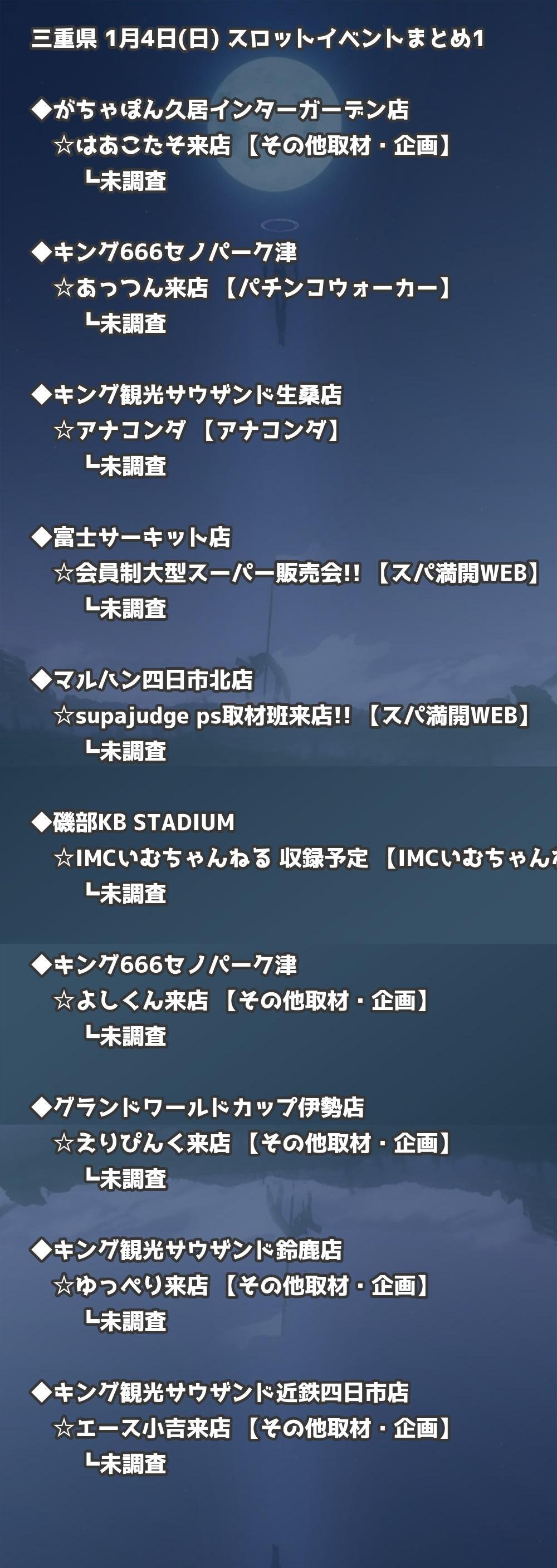 【三重県】1月4日(日) パチンコホールイベント取材まとめ記事です。