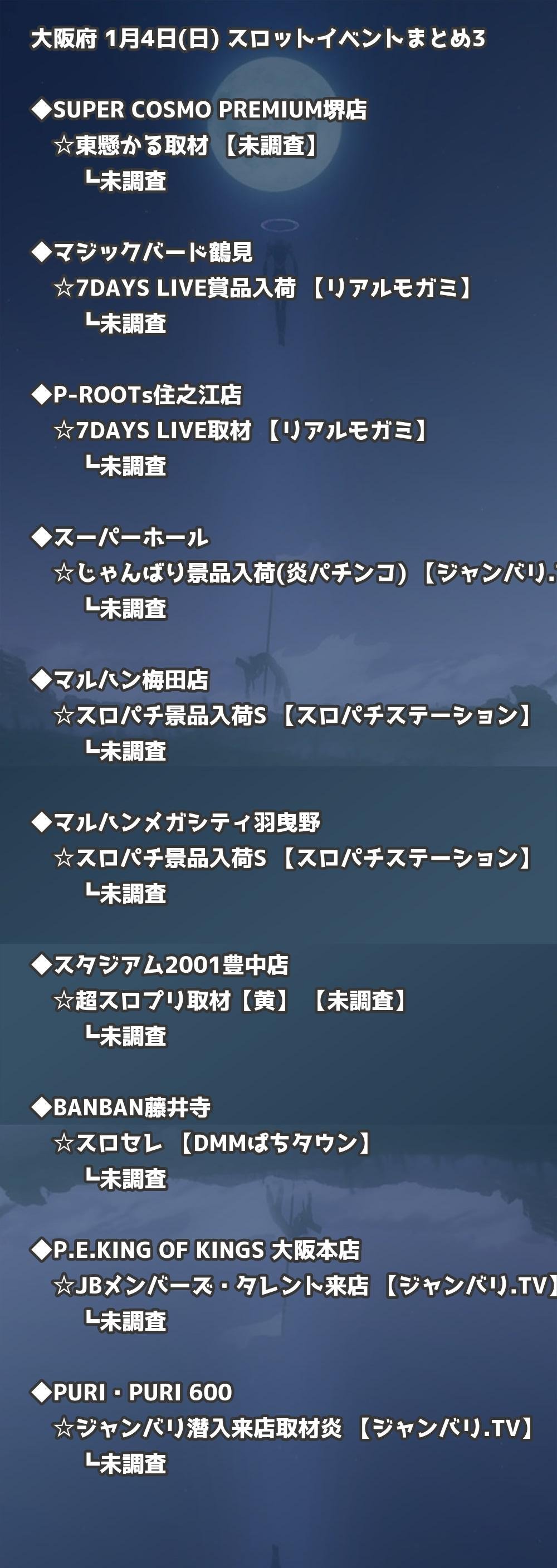 📊 大阪府 1月4日(日) 勝てるパチンコ・スロット取材店舗一覧|おすすめ順