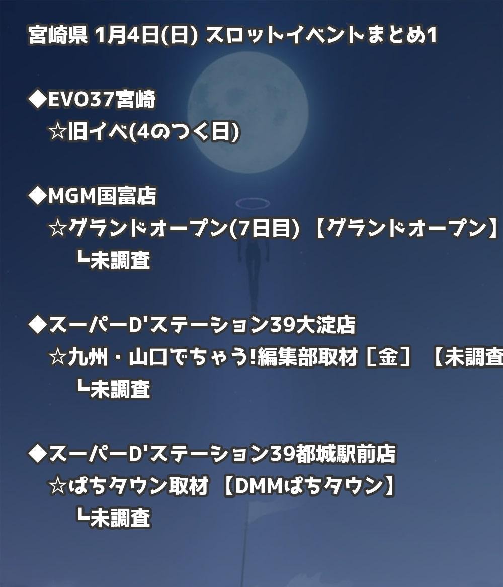 【宮崎県】1月4日(日) パチンコホールイベント取材まとめ記事です。