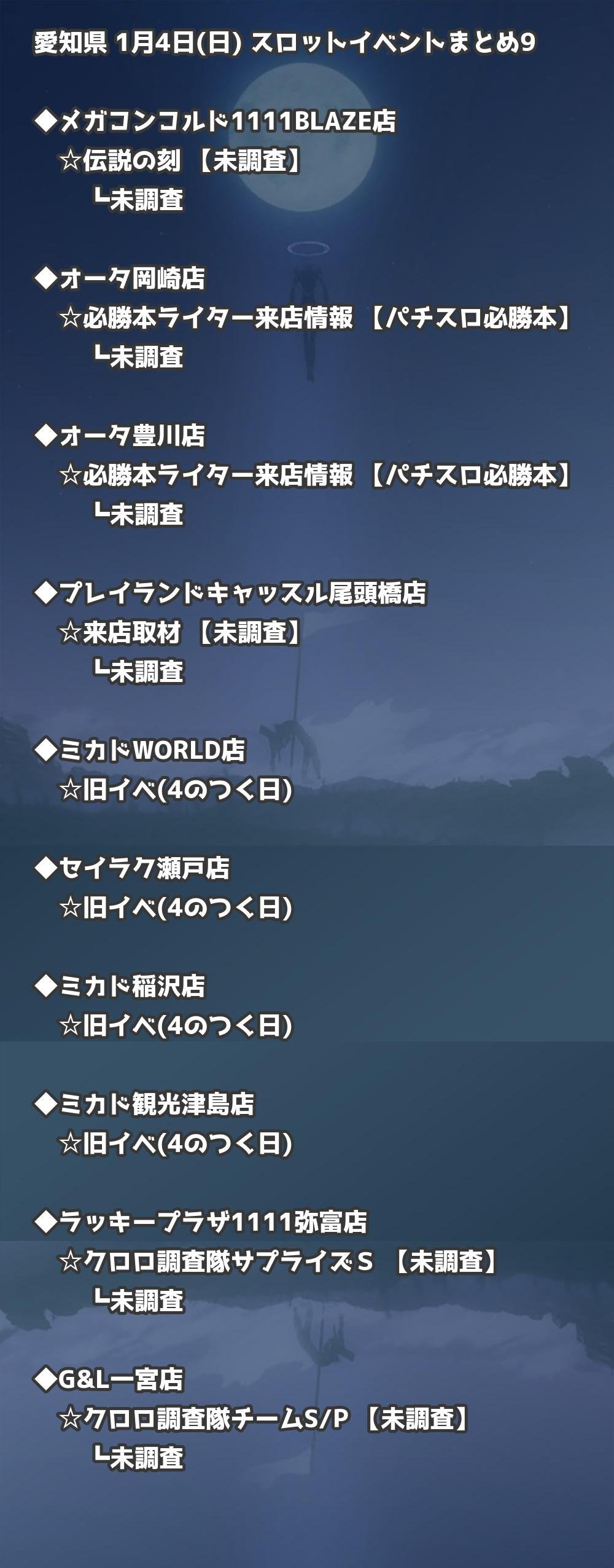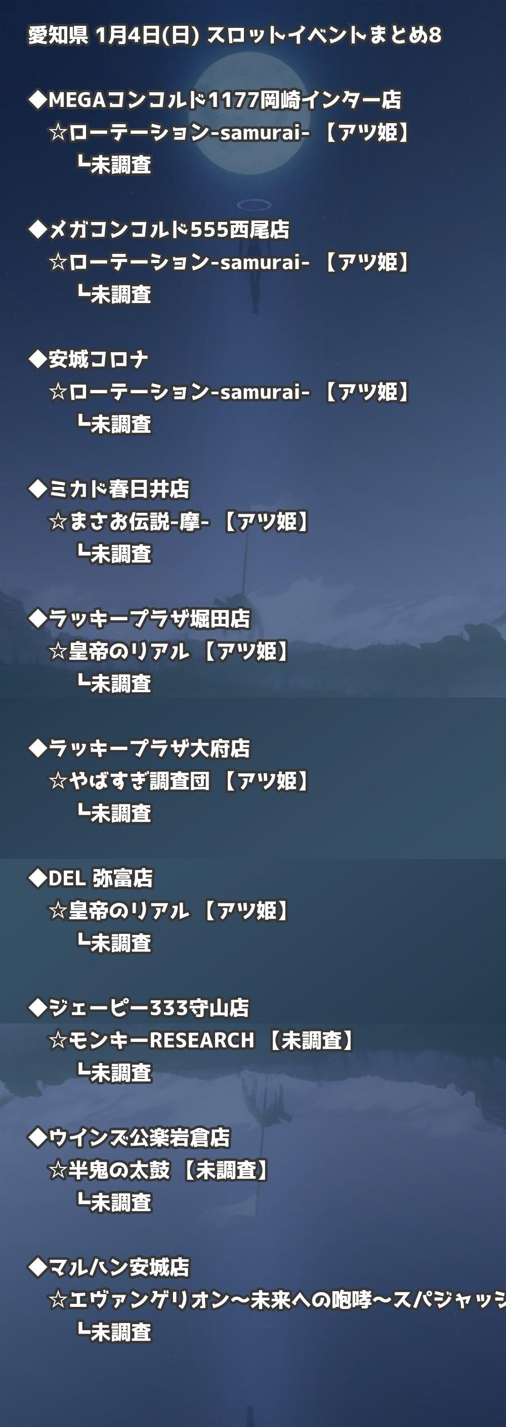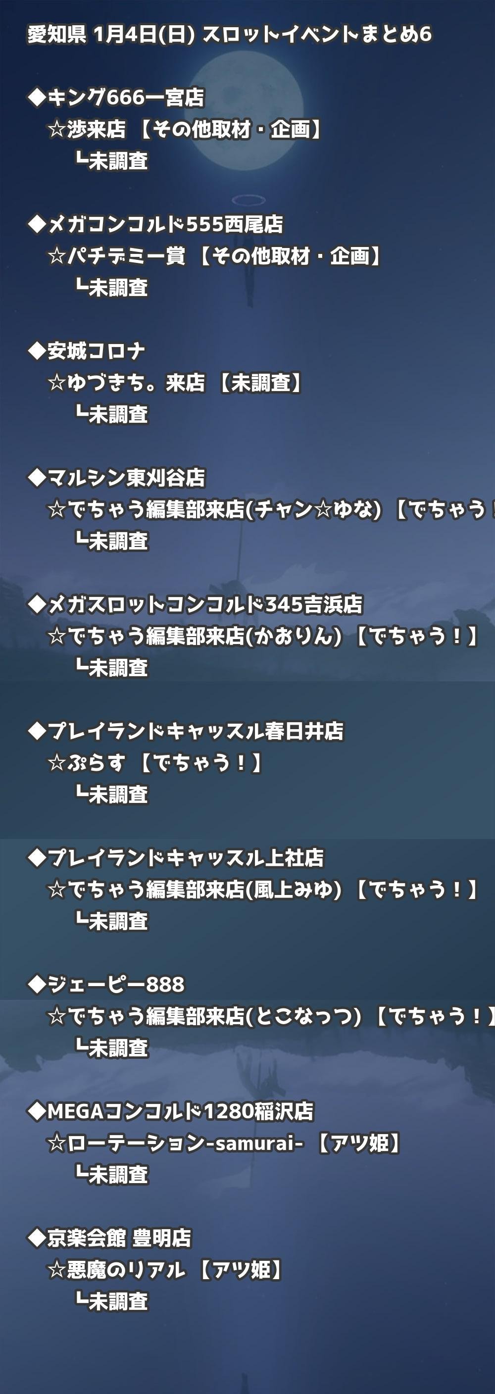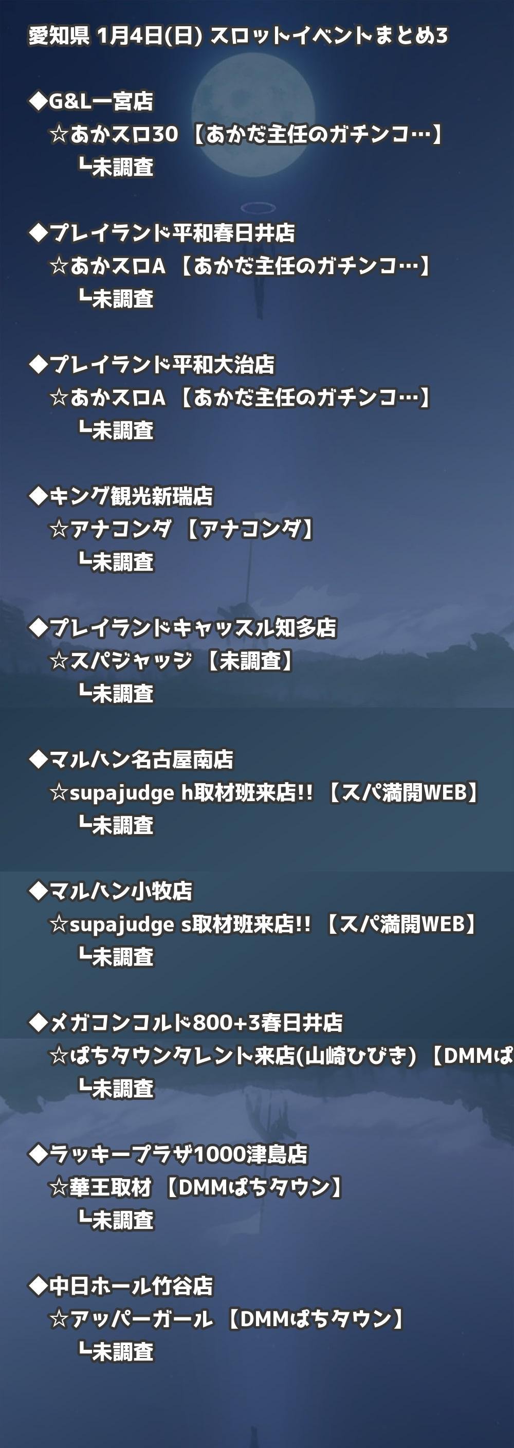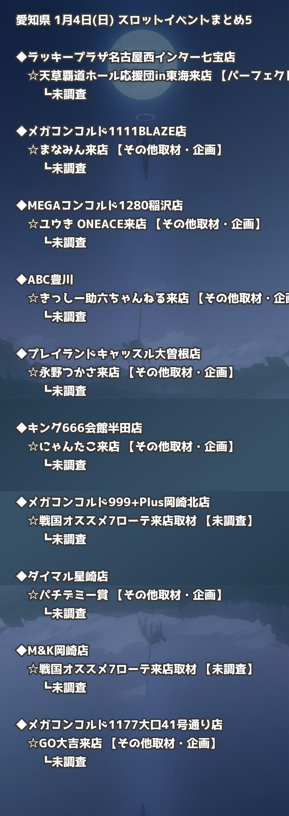 【愛知県】1月4日(日) パチンコホールイベント取材まとめ記事です。