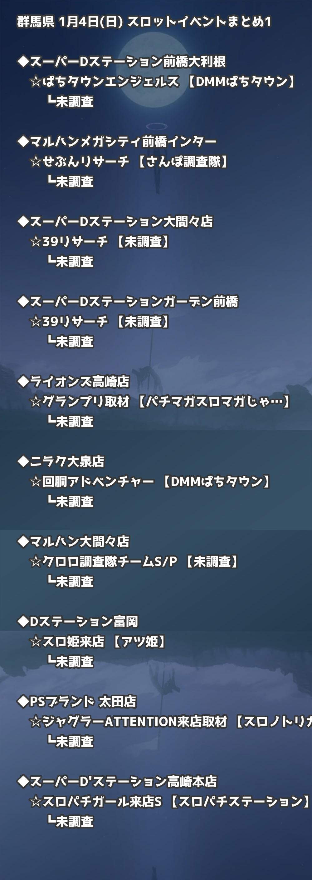 【群馬県】1月4日(日) パチンコホールイベント取材まとめ記事です。