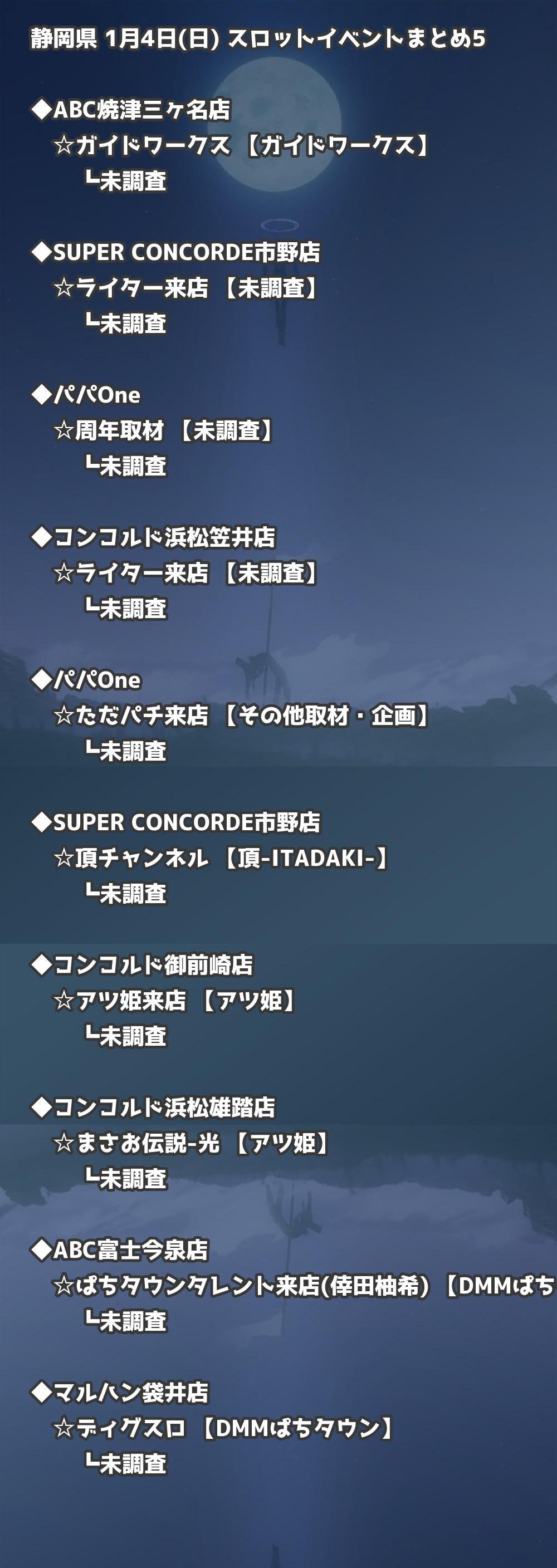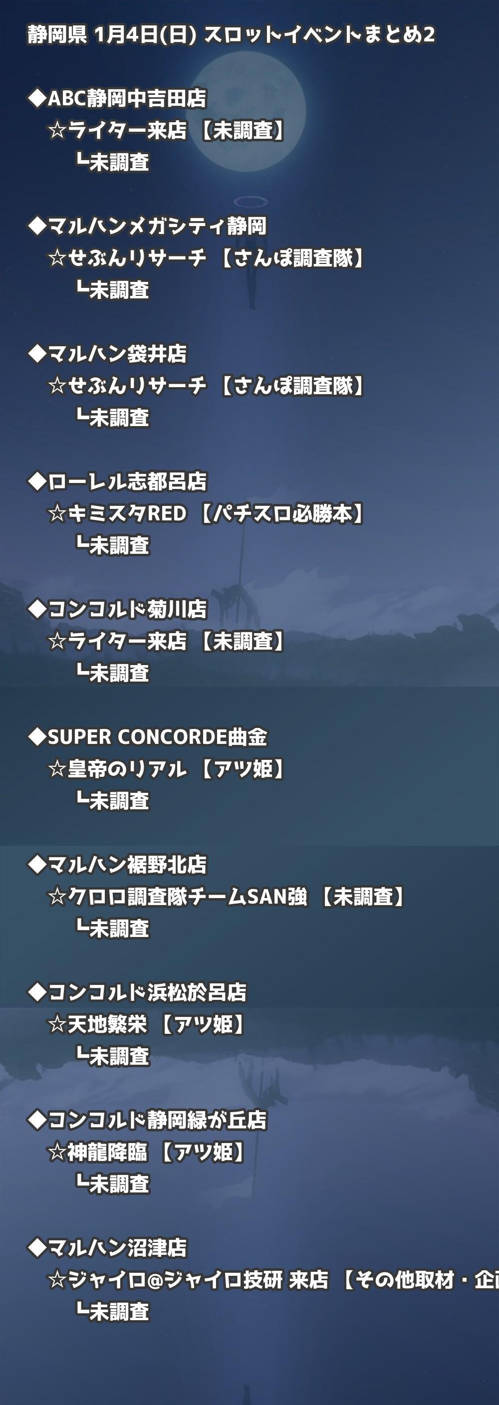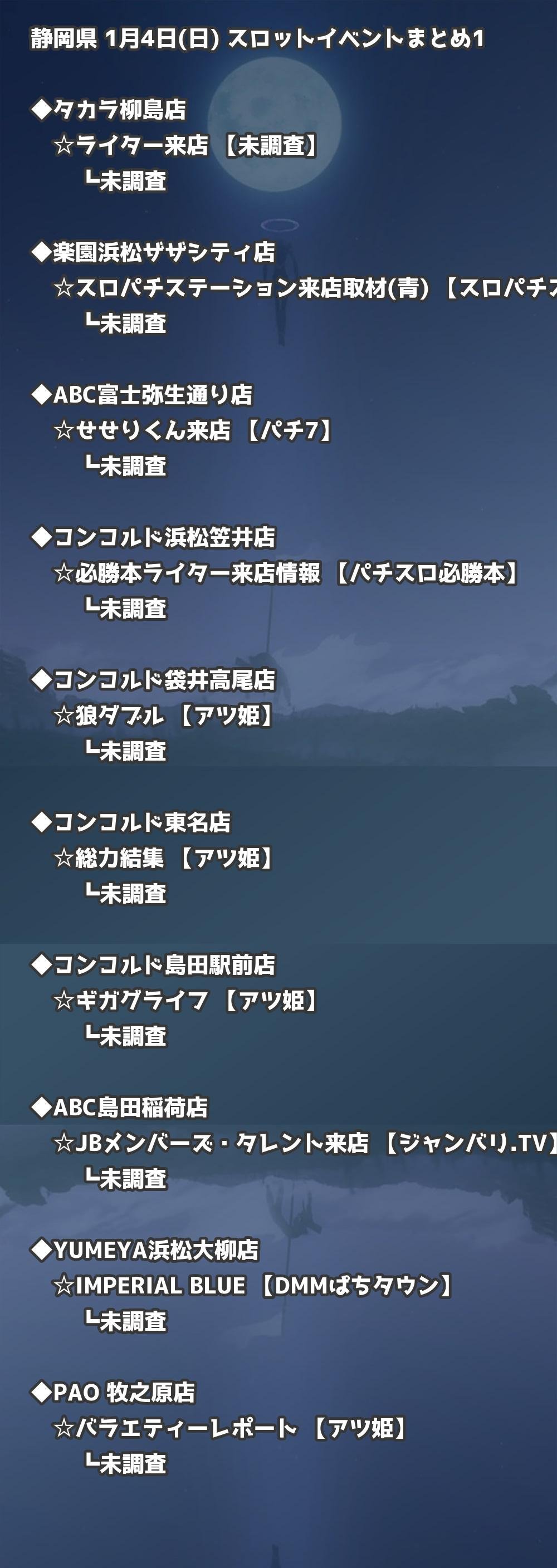 📊 静岡県 1月4日(日) 勝てるパチンコ・スロット取材店舗一覧|おすすめ順