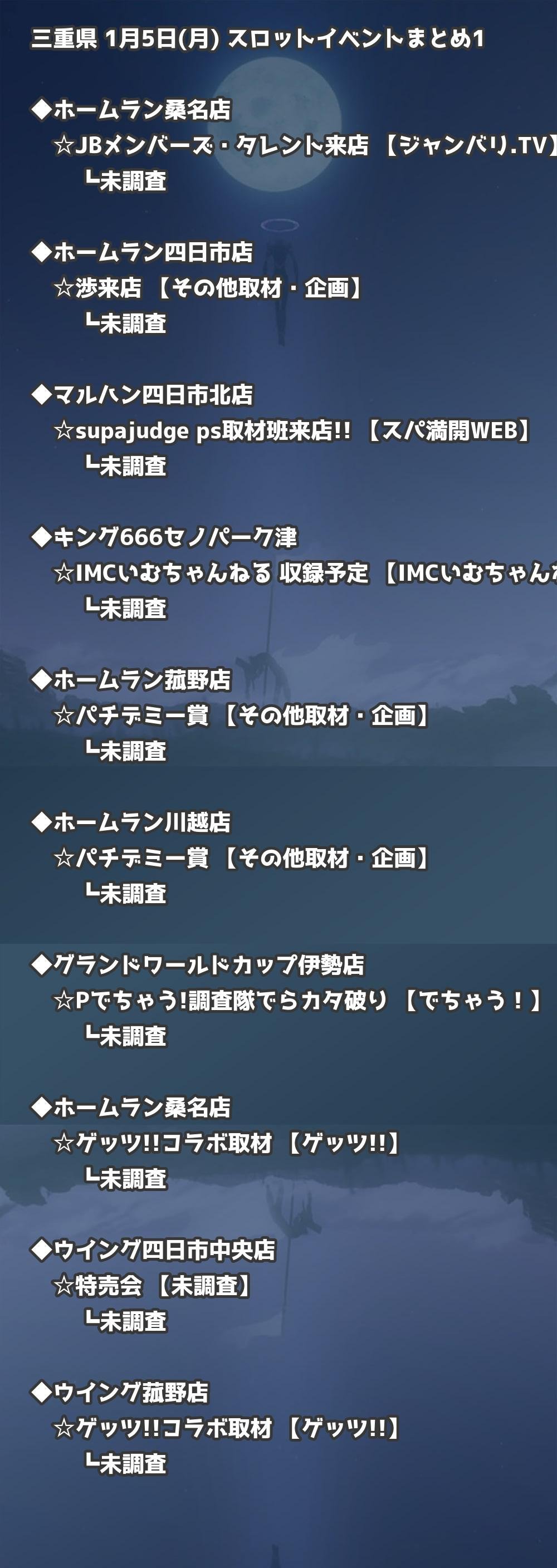【三重県】1月5日(月) パチンコホールイベント取材まとめ記事です。