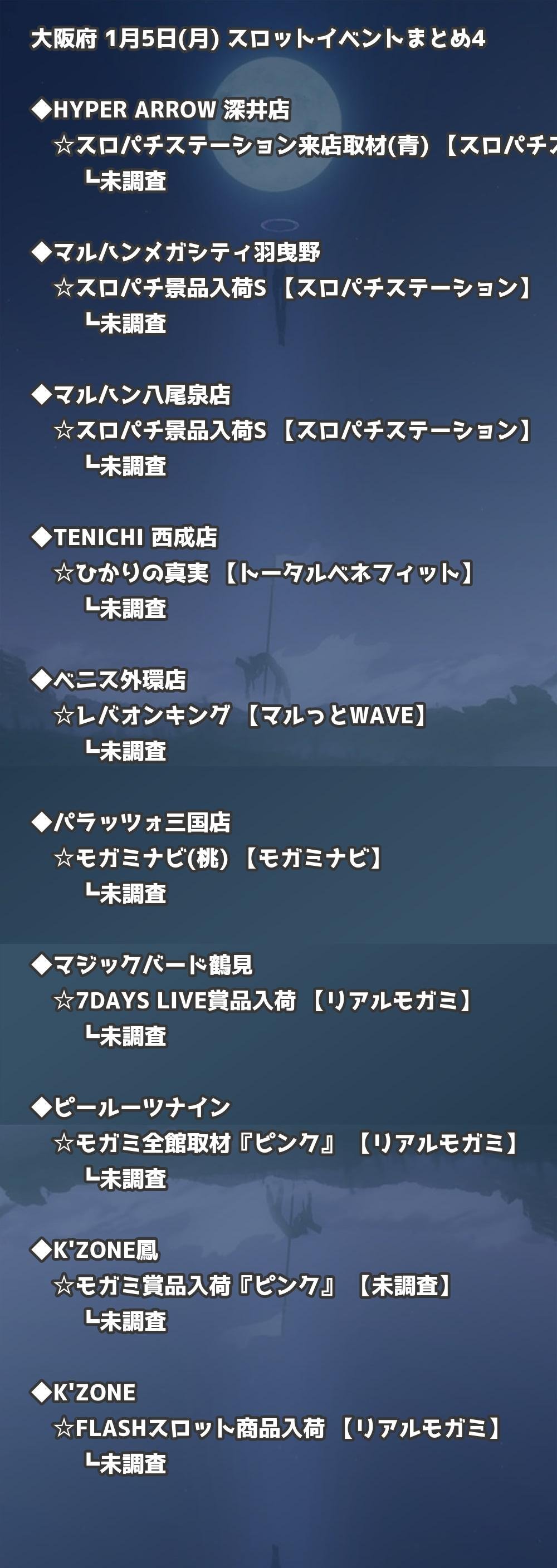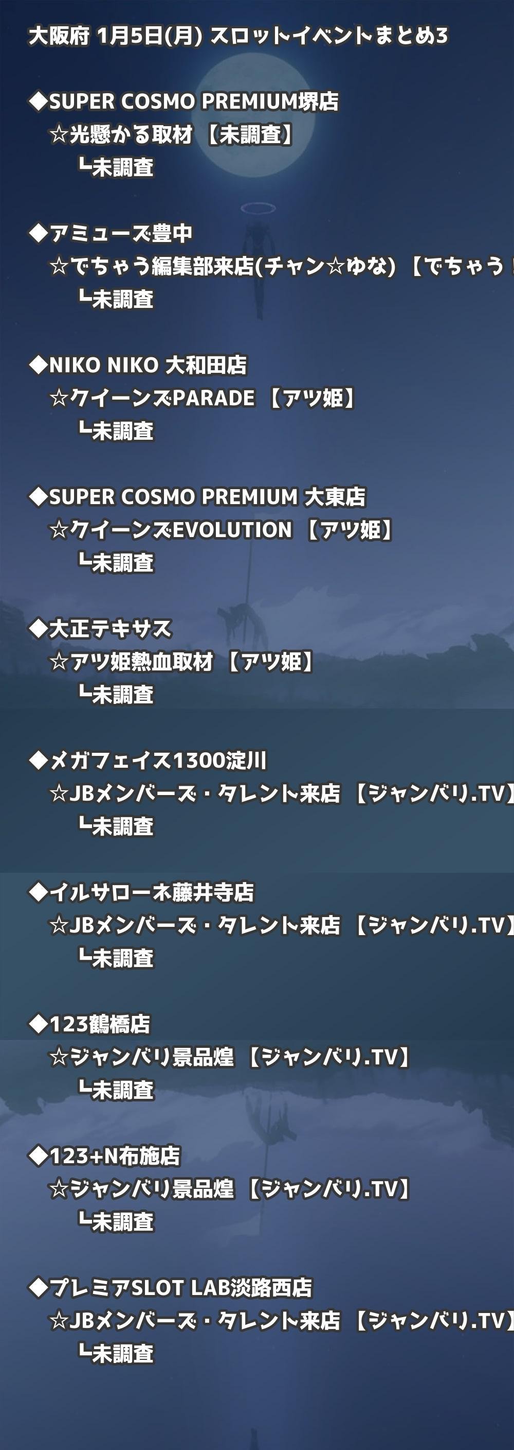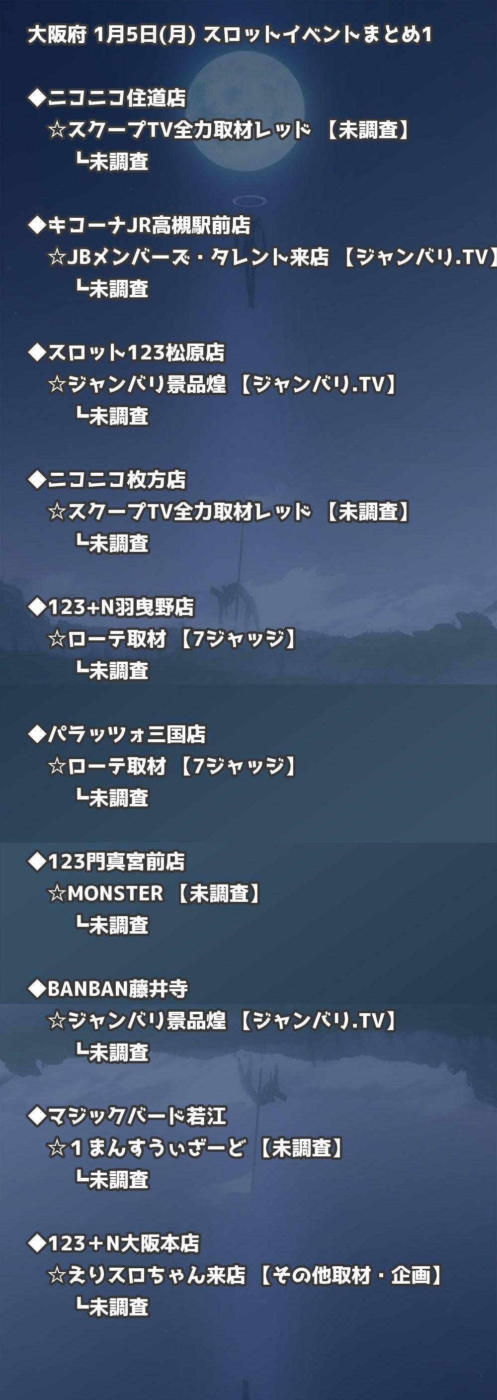 【大阪府】1月5日(月) パチンコホールイベント取材まとめ記事です。