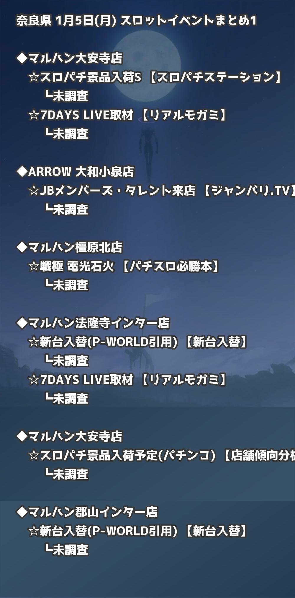 📊 奈良県 1月5日(月) 勝てるパチンコ・スロット取材店舗一覧|おすすめ順