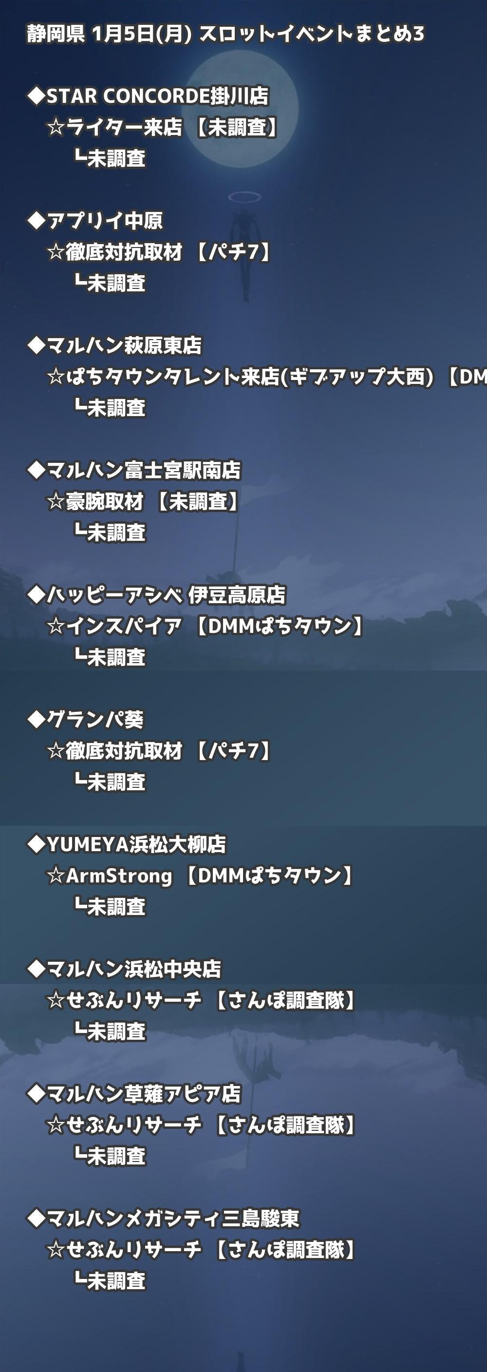【静岡県】1月5日(月) パチンコホールイベント取材まとめ記事です。