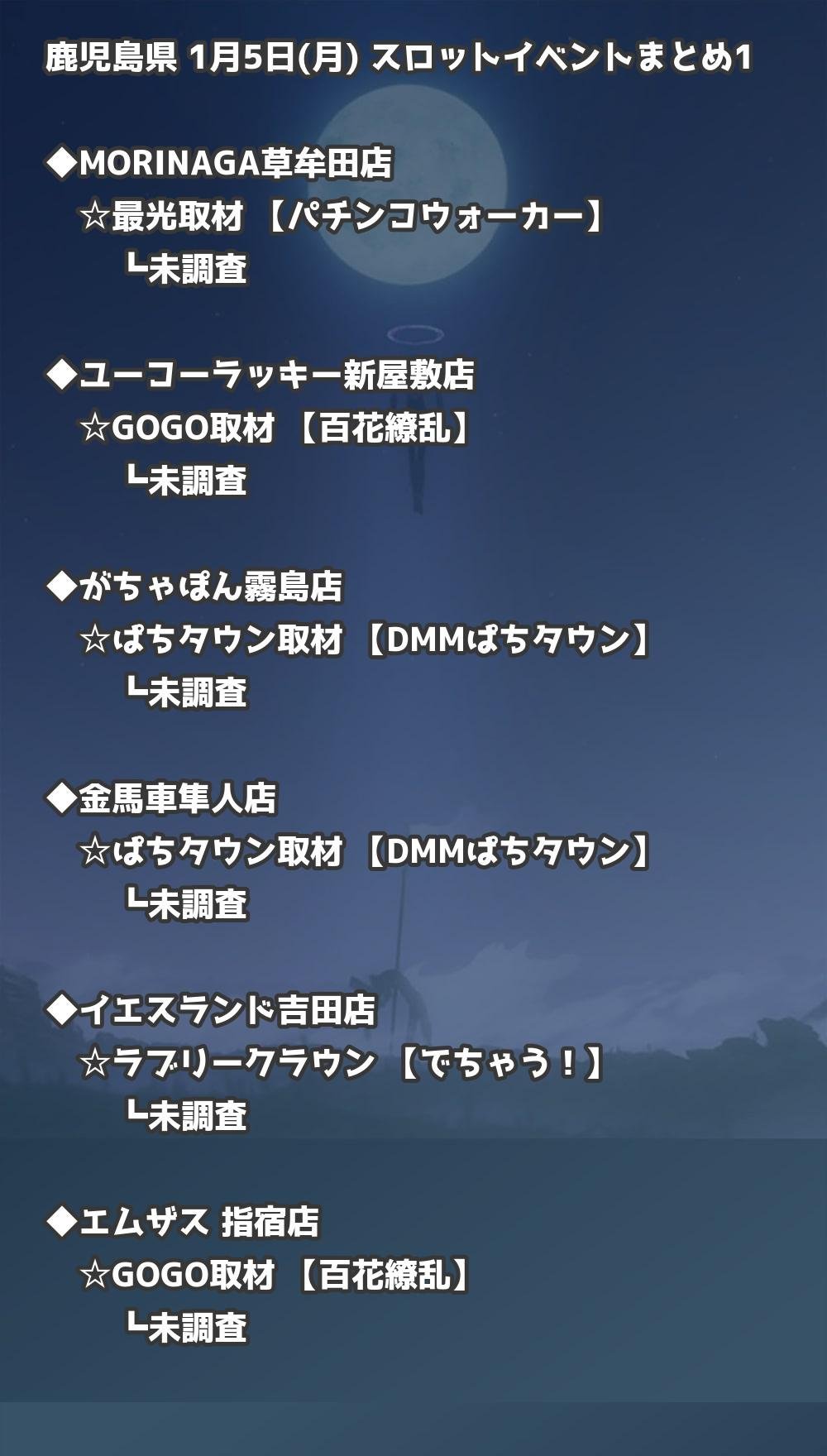 【鹿児島県】1月5日(月) パチンコホールイベント取材まとめ記事です。