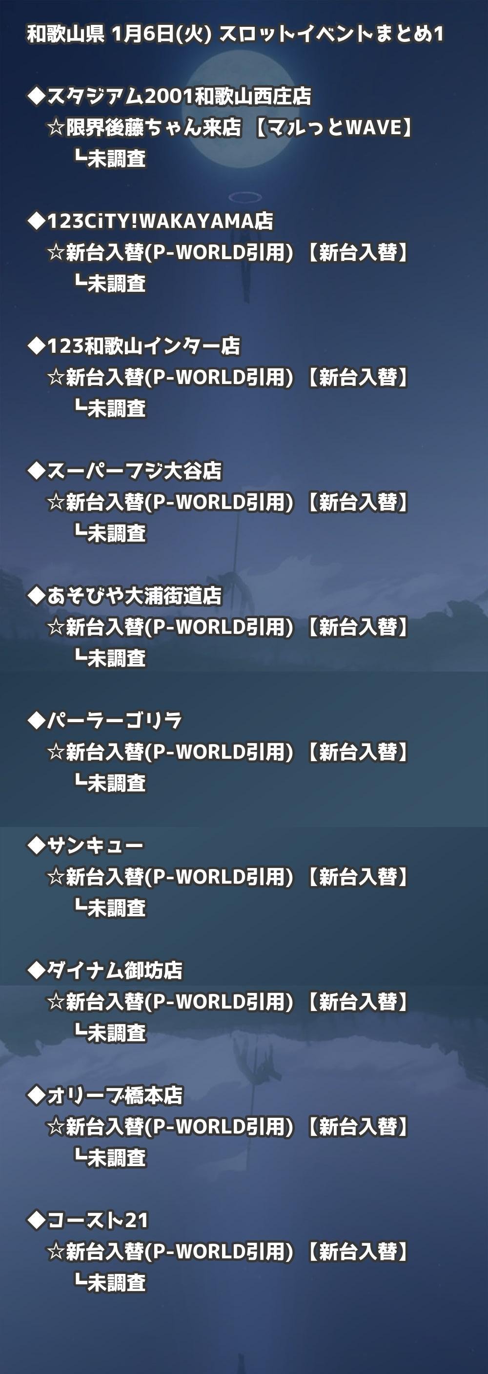 📊 和歌山県 1月6日(火) 勝てるパチンコ・スロット取材店舗一覧|おすすめ順