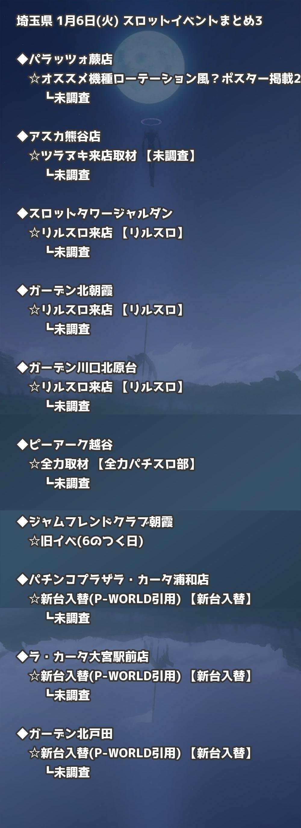 【埼玉県】1月6日(火) パチンコホールイベント取材まとめ記事です。