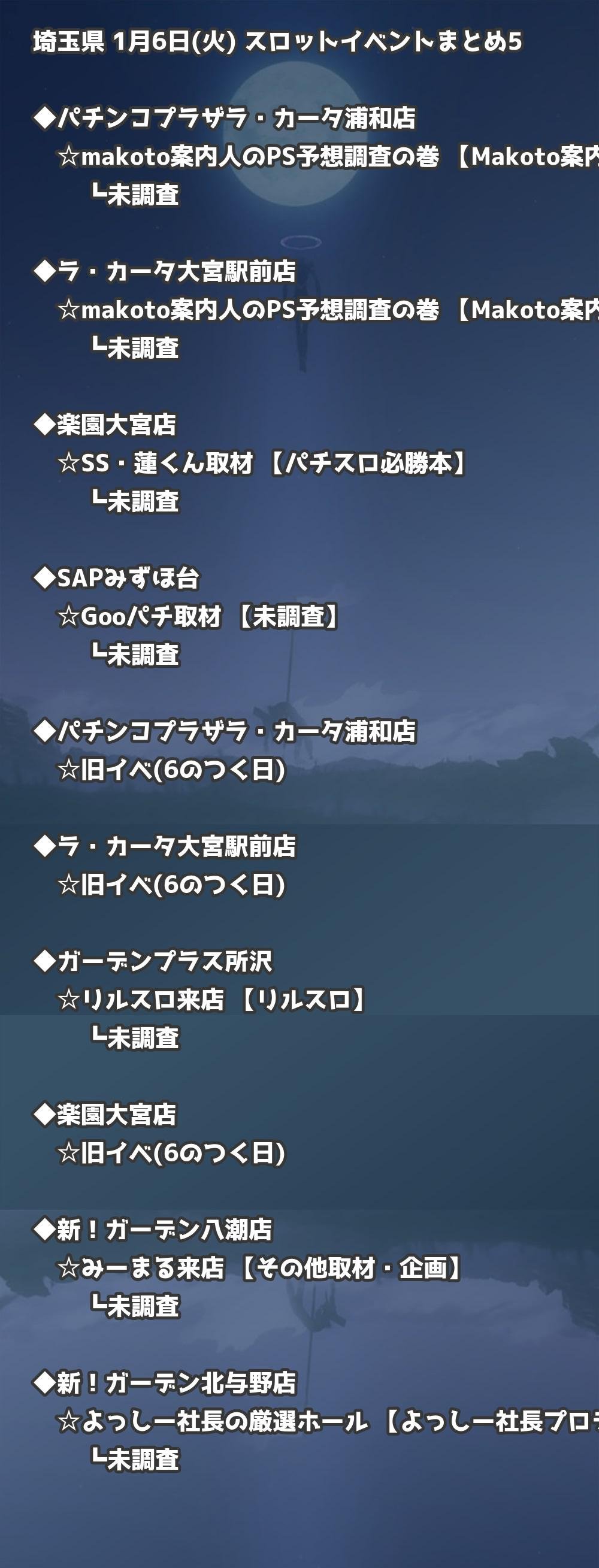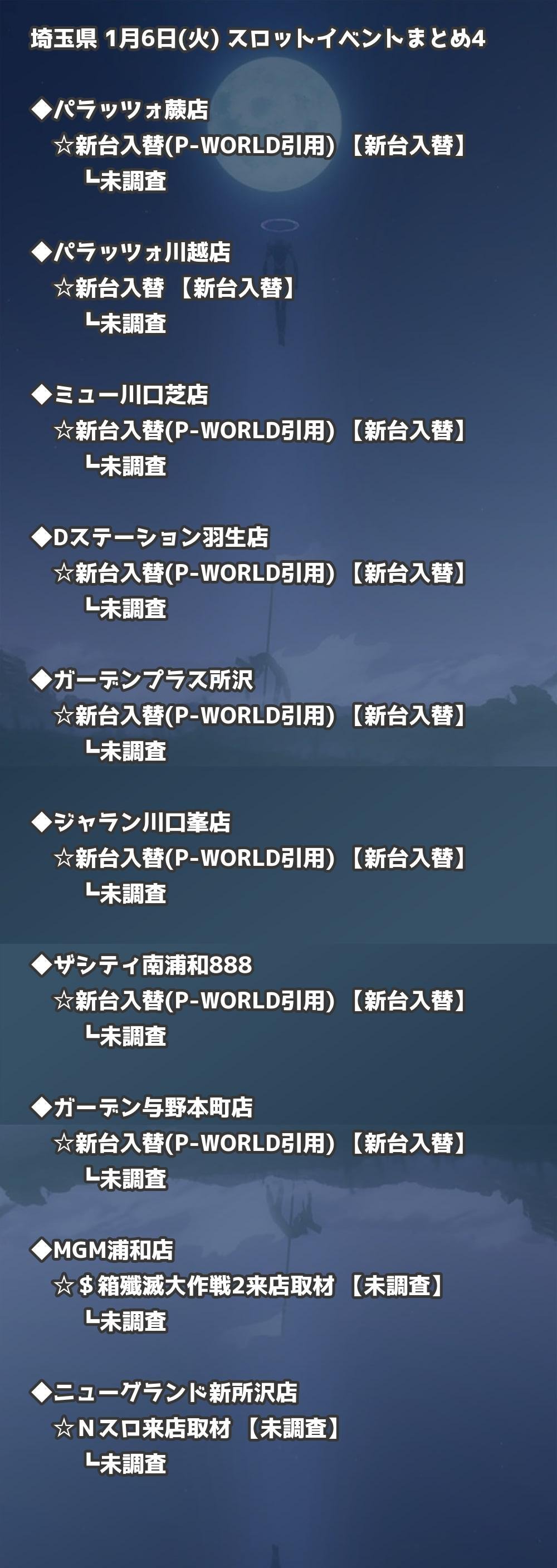 📊 埼玉県 1月6日(火) 勝てるパチンコ・スロット取材店舗一覧|おすすめ順