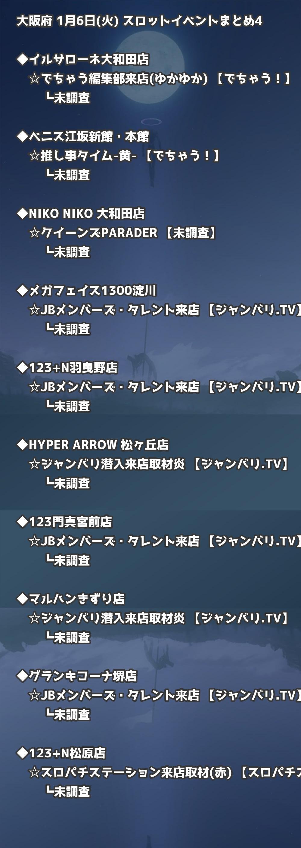📊 大阪府 1月6日(火) 勝てるパチンコ・スロット取材店舗一覧|おすすめ順
