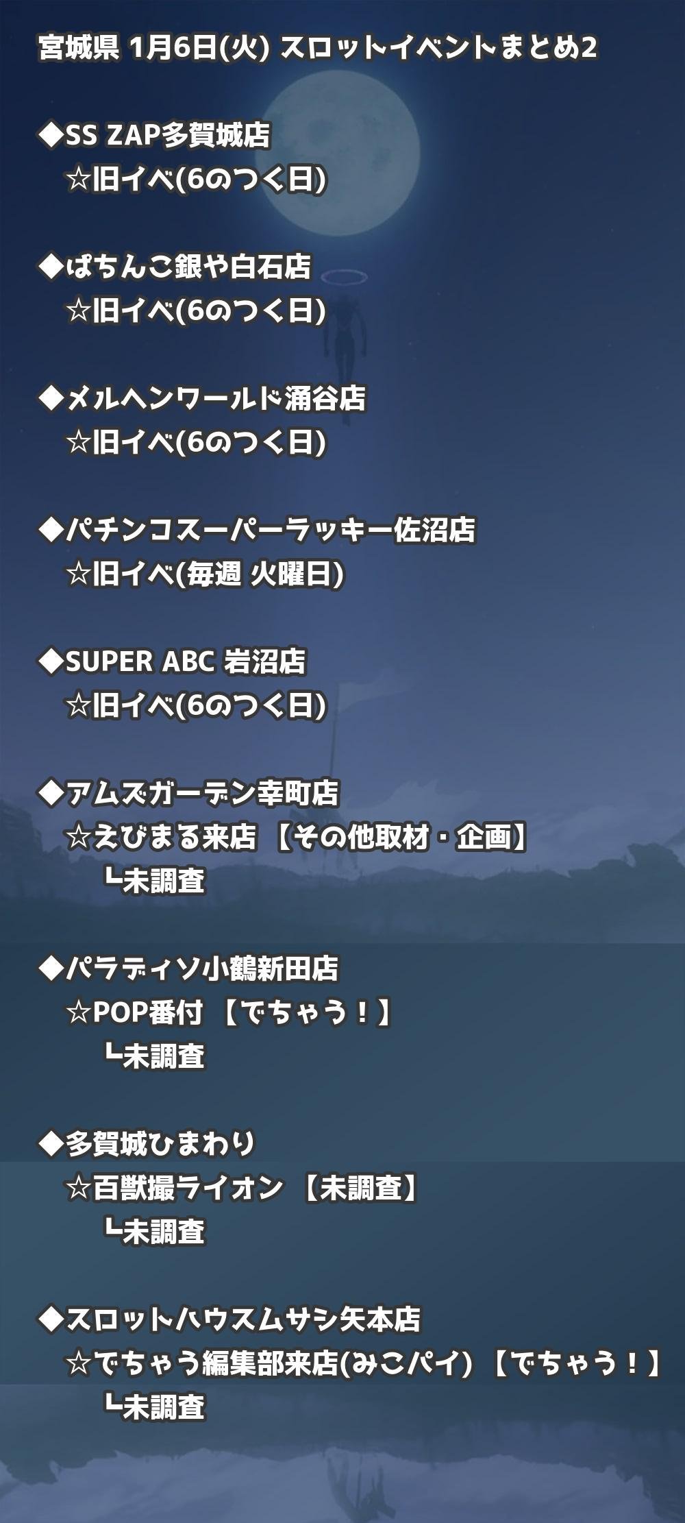 【宮城県】1月6日(火) パチンコホールイベント取材まとめ記事です。