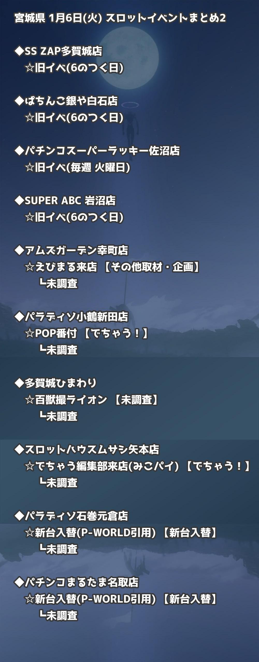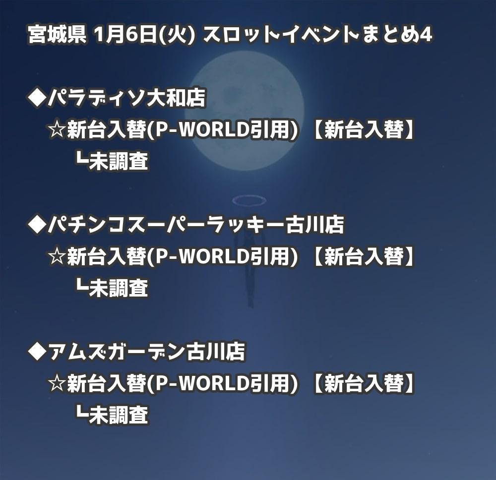 【宮城県】1月6日(火) パチンコホールイベント取材まとめ記事です。