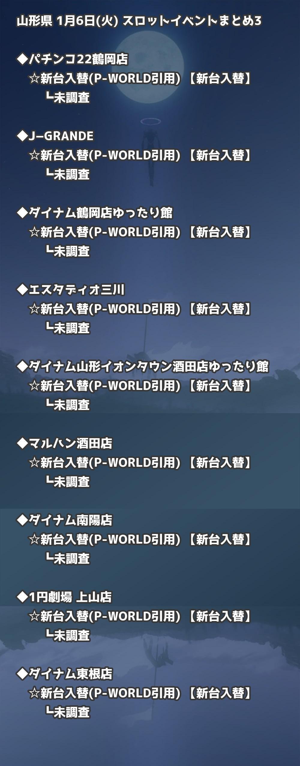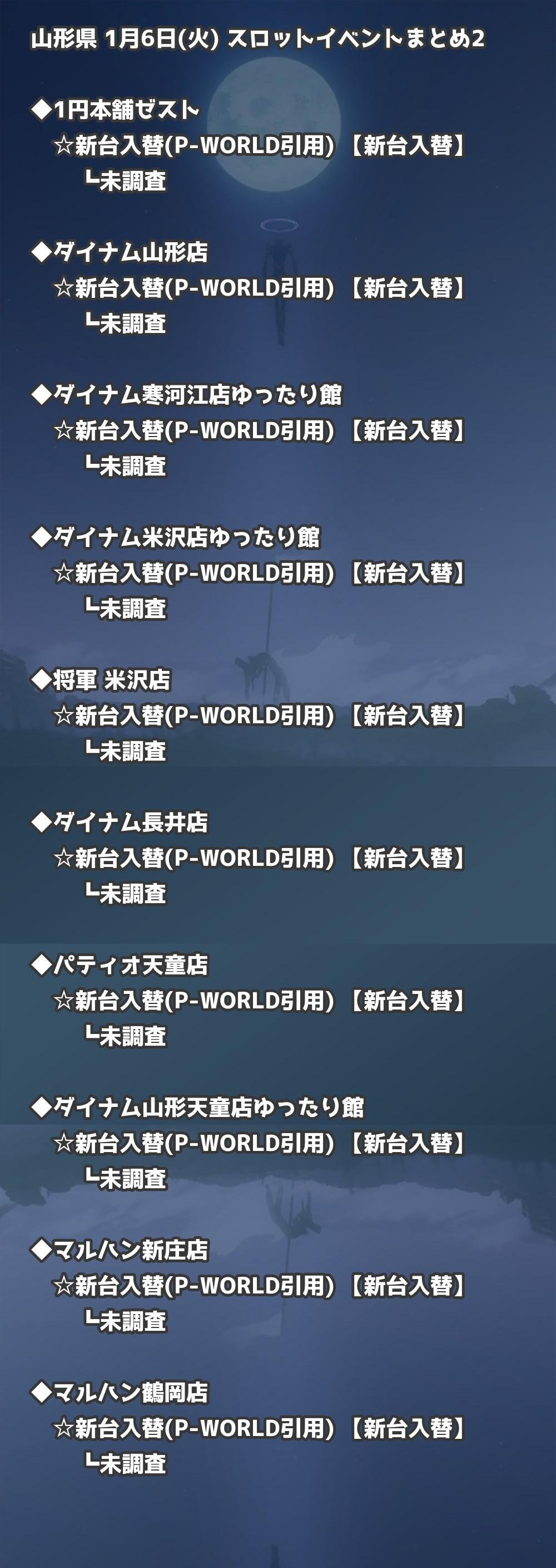 📊 山形県 1月6日(火) 勝てるパチンコ・スロット取材店舗一覧|おすすめ順