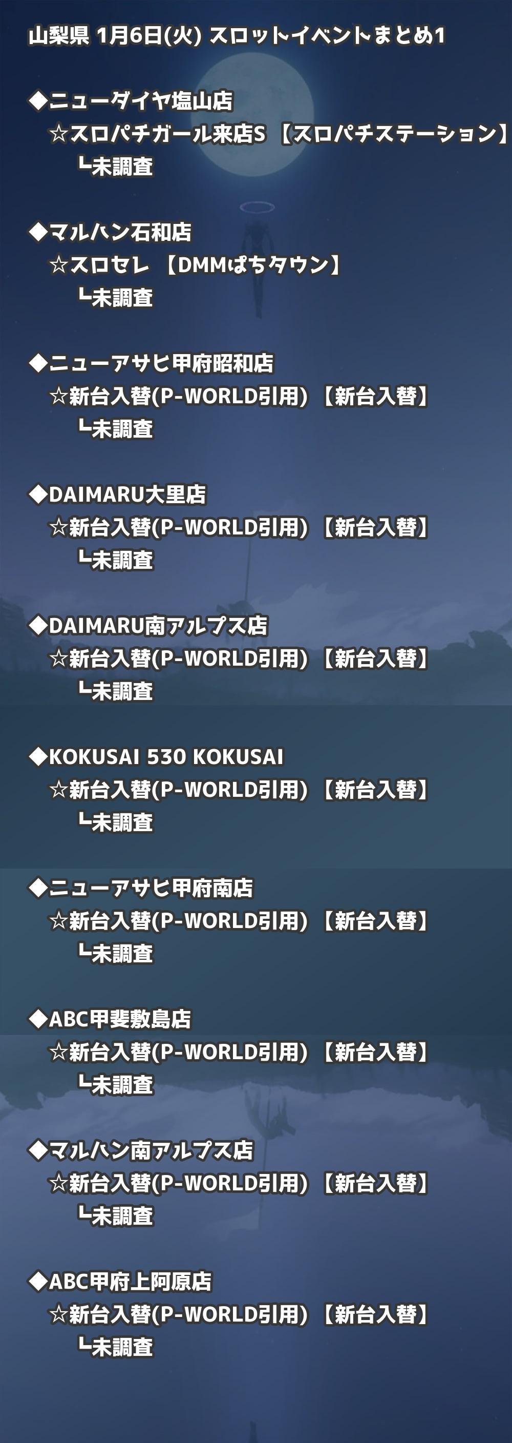 📊 山梨県 1月6日(火) 勝てるパチンコ・スロット取材店舗一覧|おすすめ順