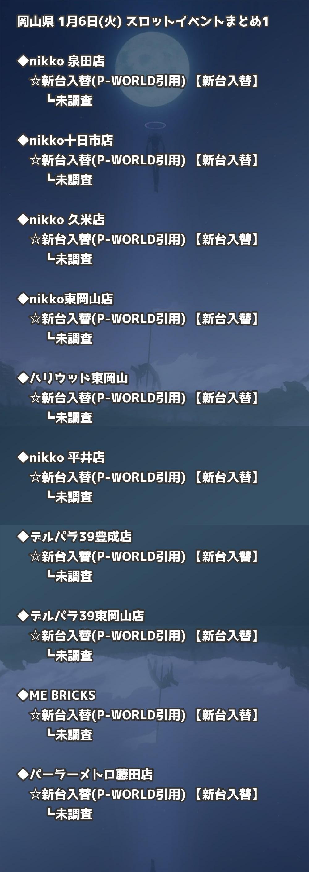 【岡山県】1月6日(火) パチンコホールイベント取材まとめ記事です。