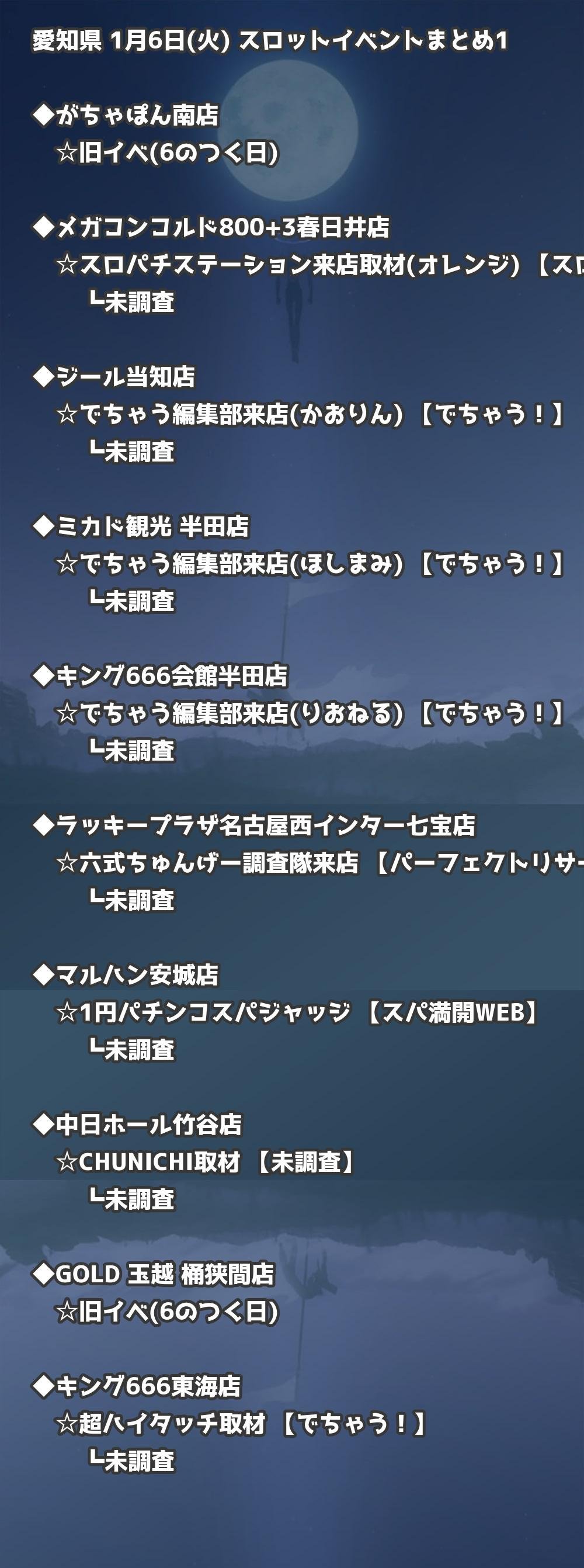 📊 愛知県 1月6日(火) 勝てるパチンコ・スロット取材店舗一覧|おすすめ順