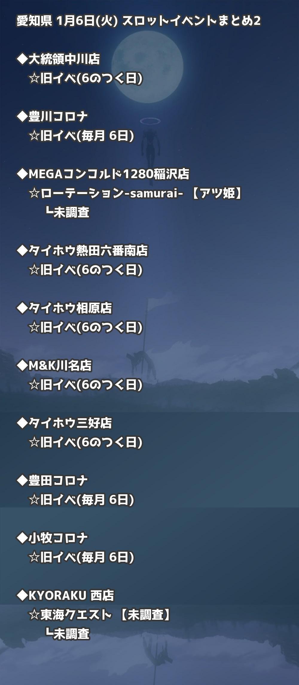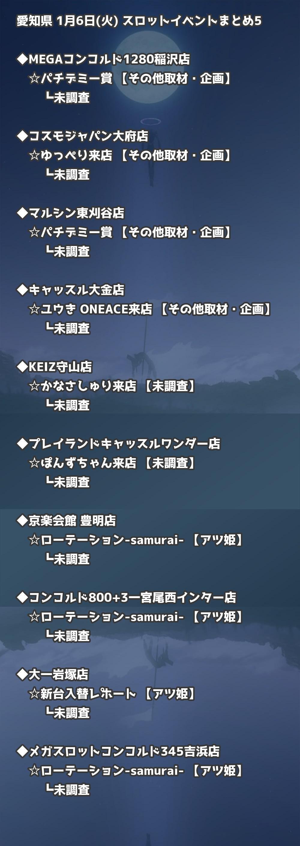 【愛知県】1月6日(火) パチンコホールイベント取材まとめ記事です。