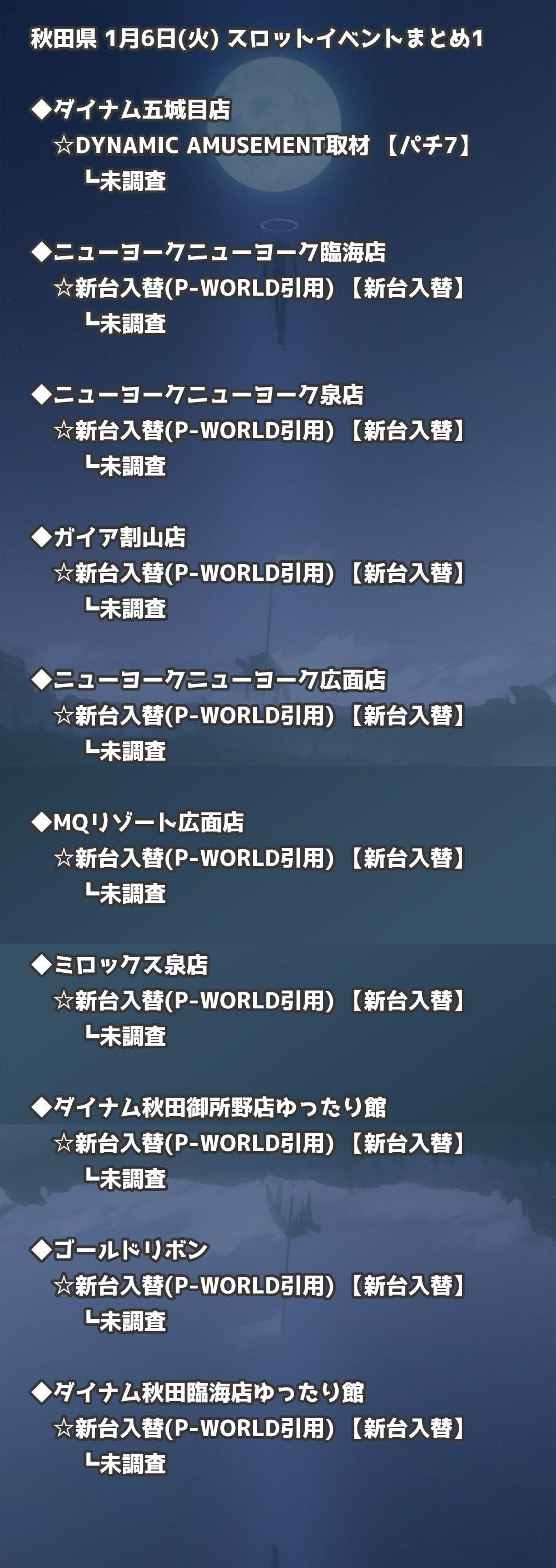 📊 秋田県 1月6日(火) 勝てるパチンコ・スロット取材店舗一覧|おすすめ順