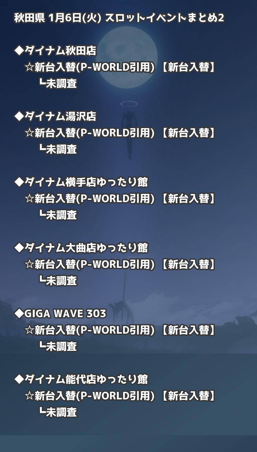 【秋田県】1月6日(火) パチンコホールイベント取材まとめ記事です。