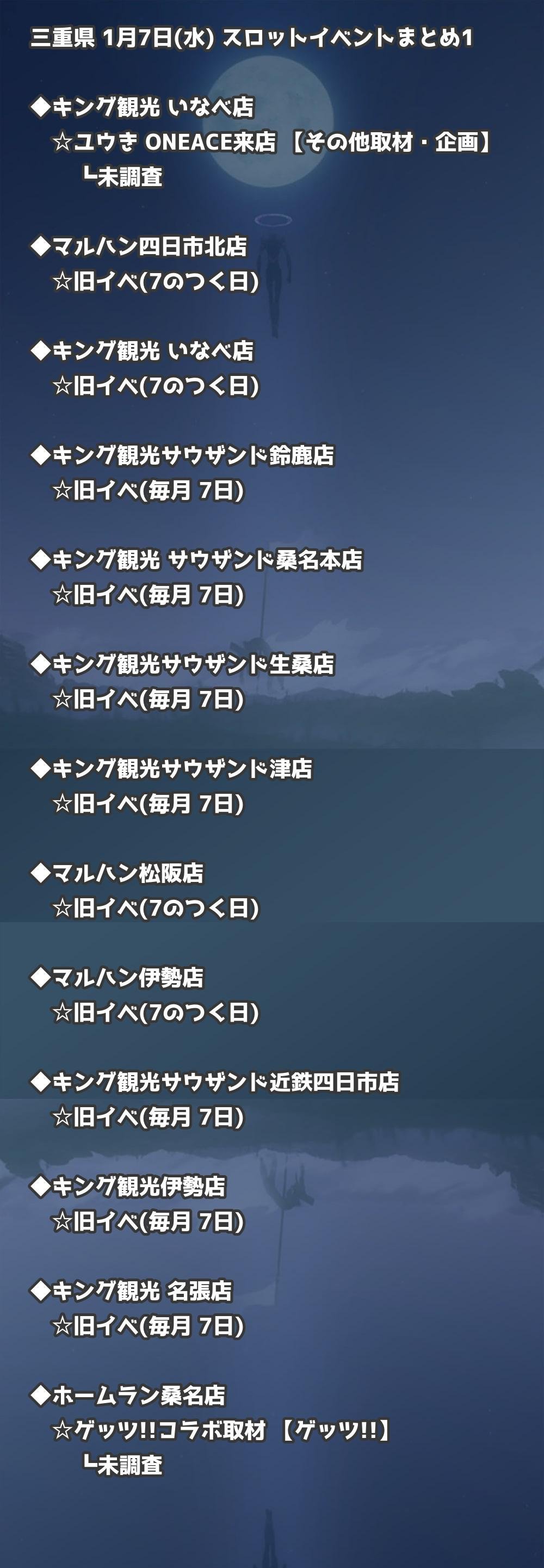 | マルハン四日市店 | 旧イベ(7のつく日) | 旧イベ |
