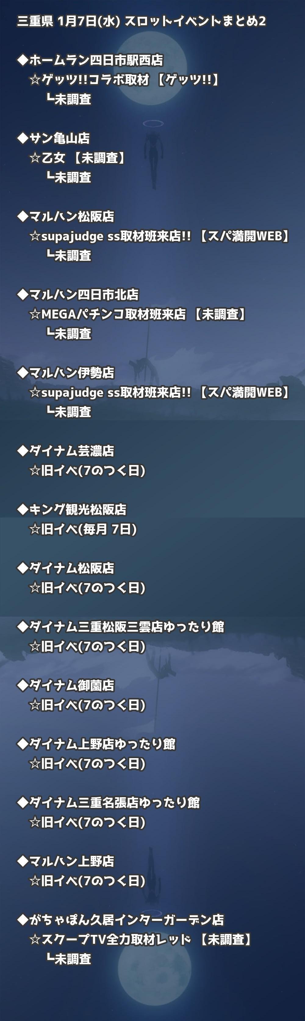 【三重県】1月7日(水) パチンコホールイベント取材まとめ記事です。