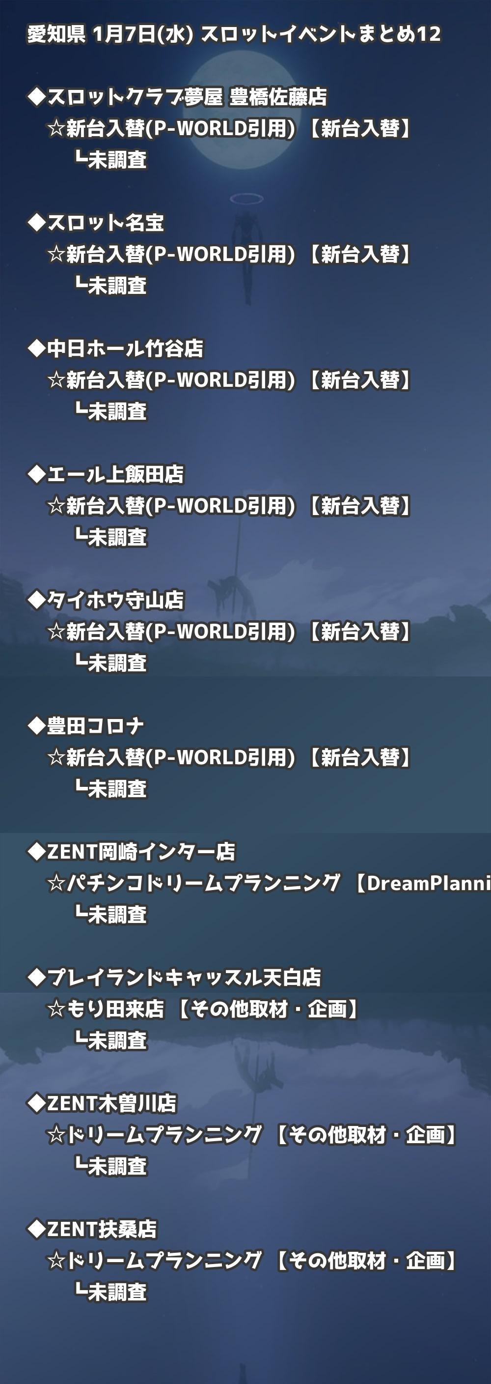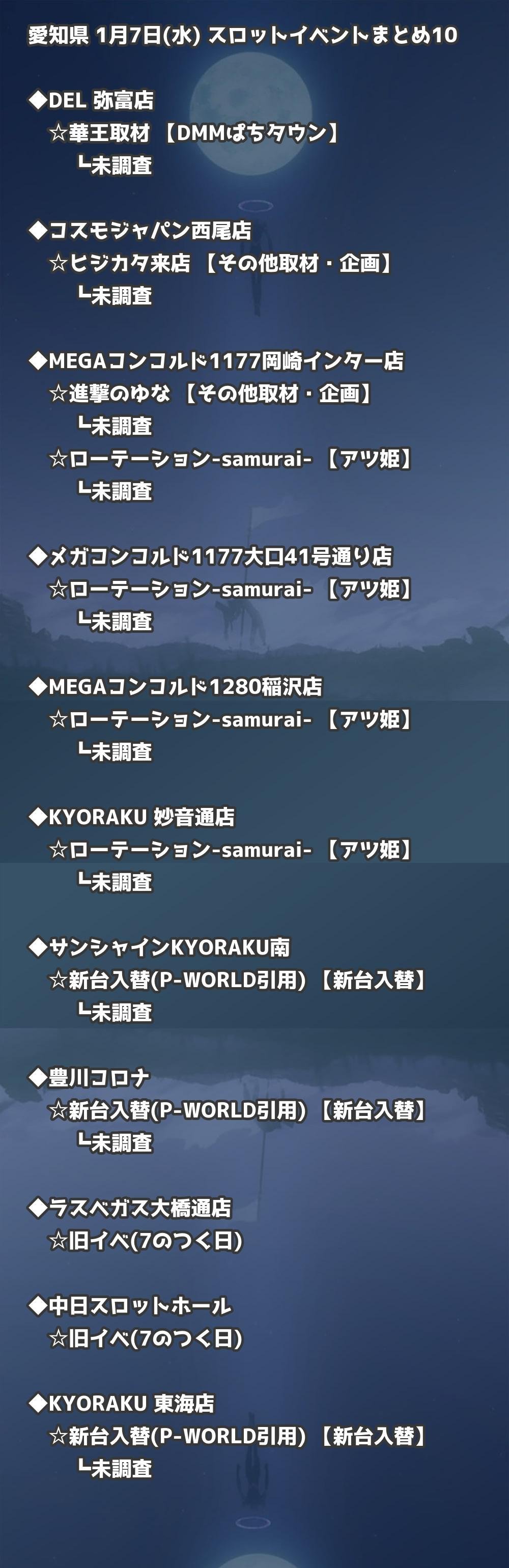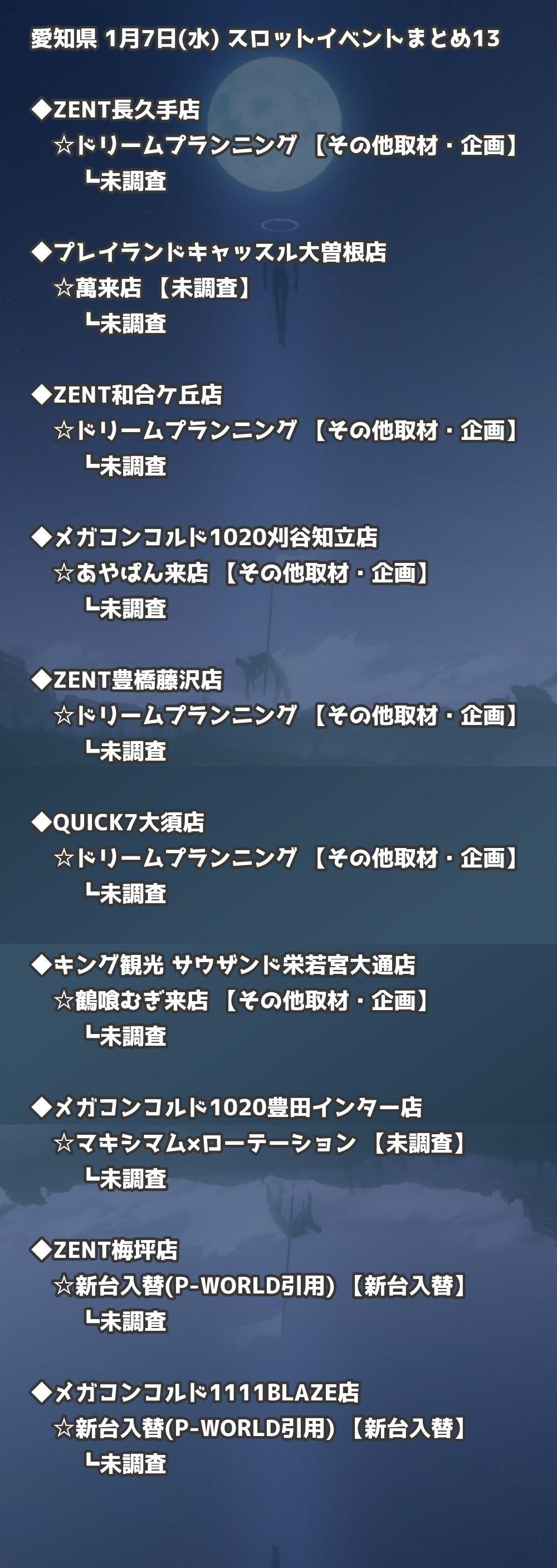 【愛知県】1月7日(水) パチンコホールイベント取材まとめ記事です。