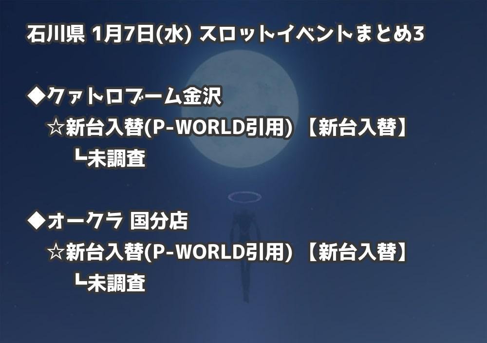 【石川県】1月7日(水) パチンコホールイベント取材まとめ記事です。