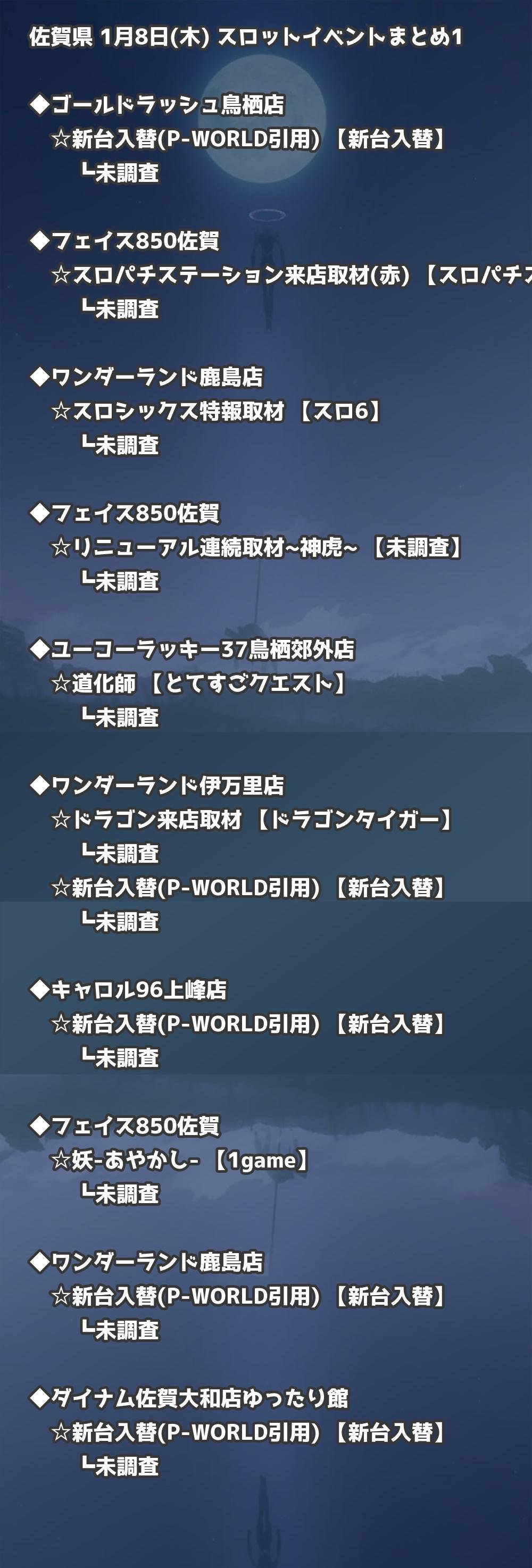 📊 佐賀県 1月8日(木) 勝てるパチンコ・スロット取材店舗一覧|おすすめ順