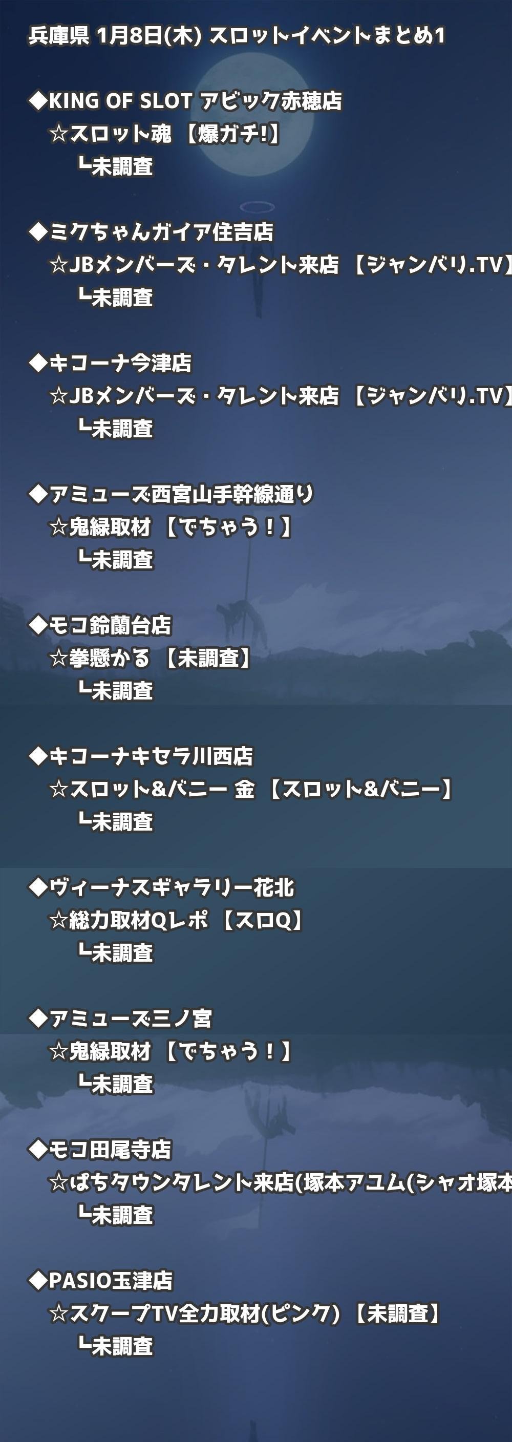 【兵庫県】1月8日(木) パチンコホールイベント取材まとめ記事です。
