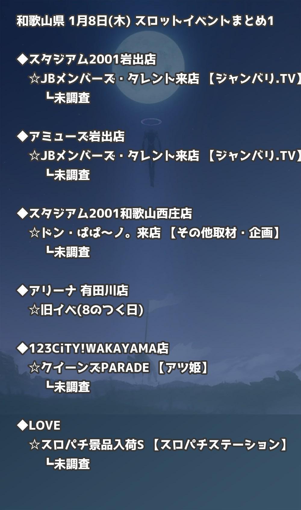 📊 和歌山県 1月8日(木) 勝てるパチンコ・スロット取材店舗一覧|おすすめ順
