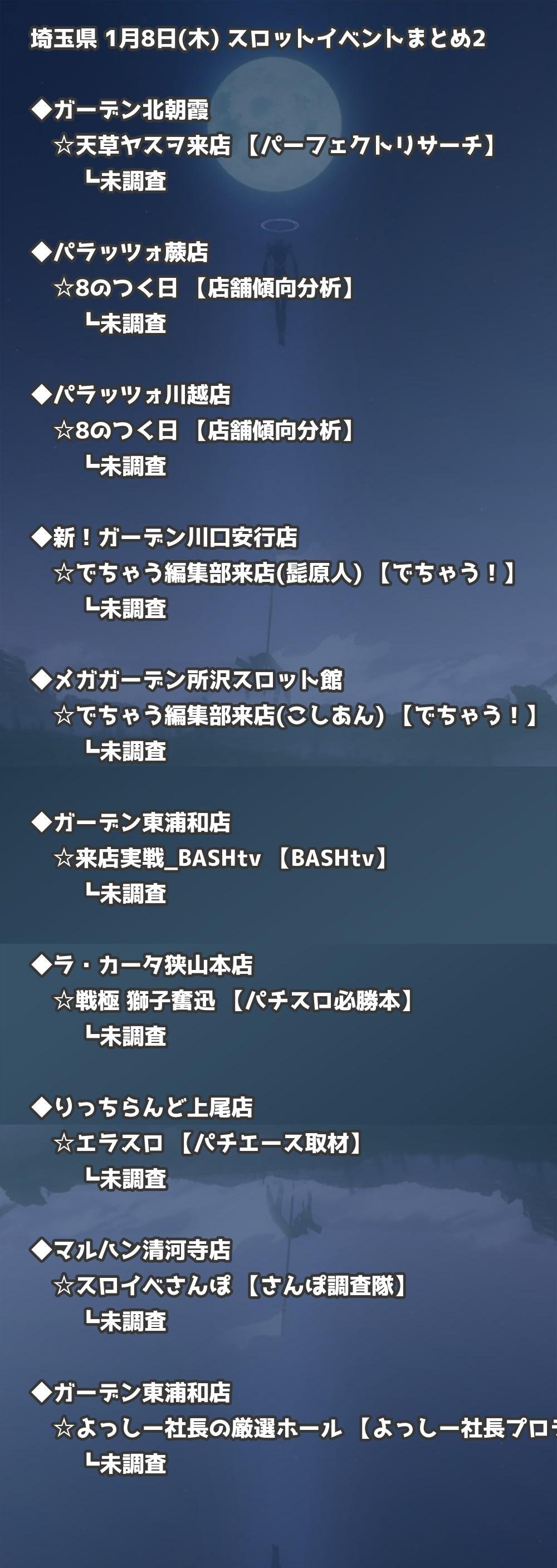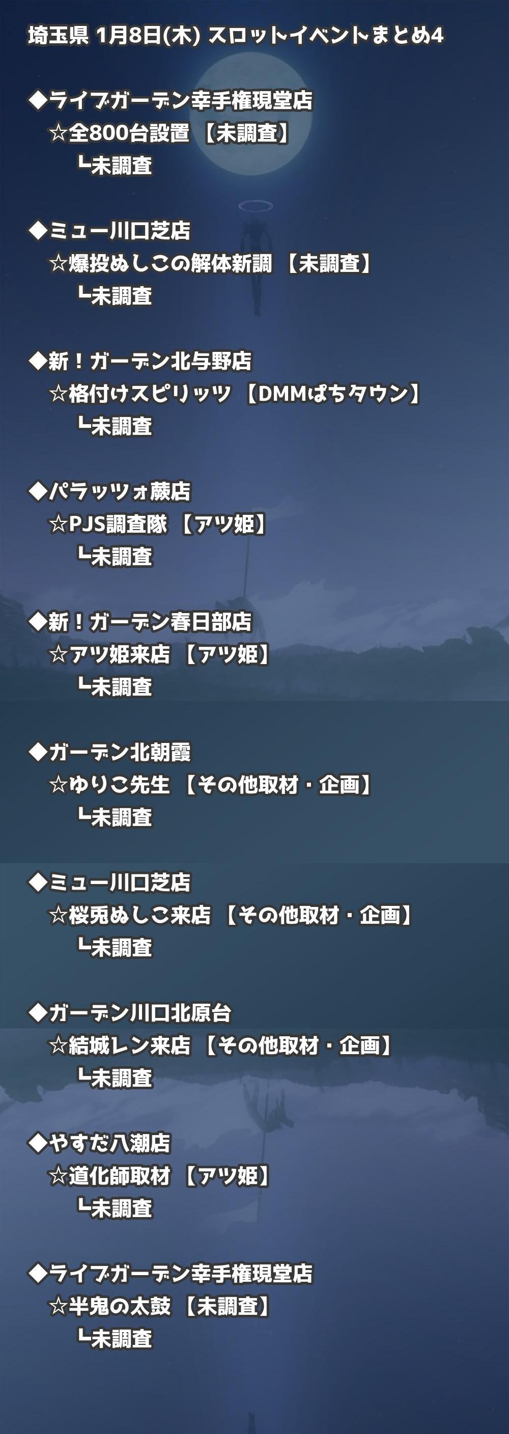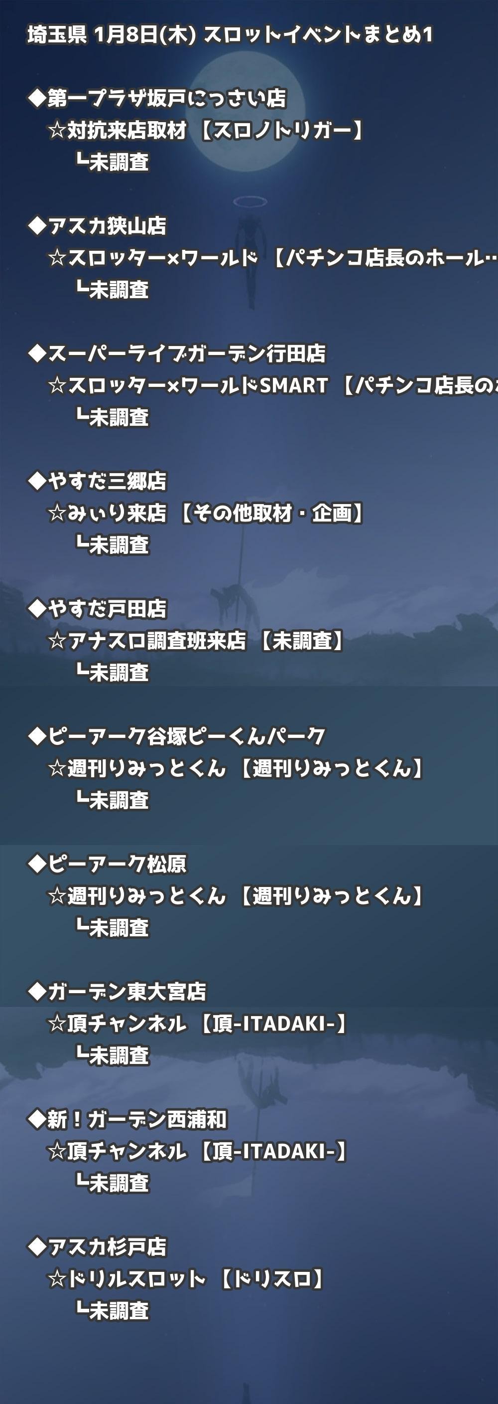 📊 埼玉県 1月8日(木) 勝てるパチンコ・スロット取材店舗一覧|おすすめ順