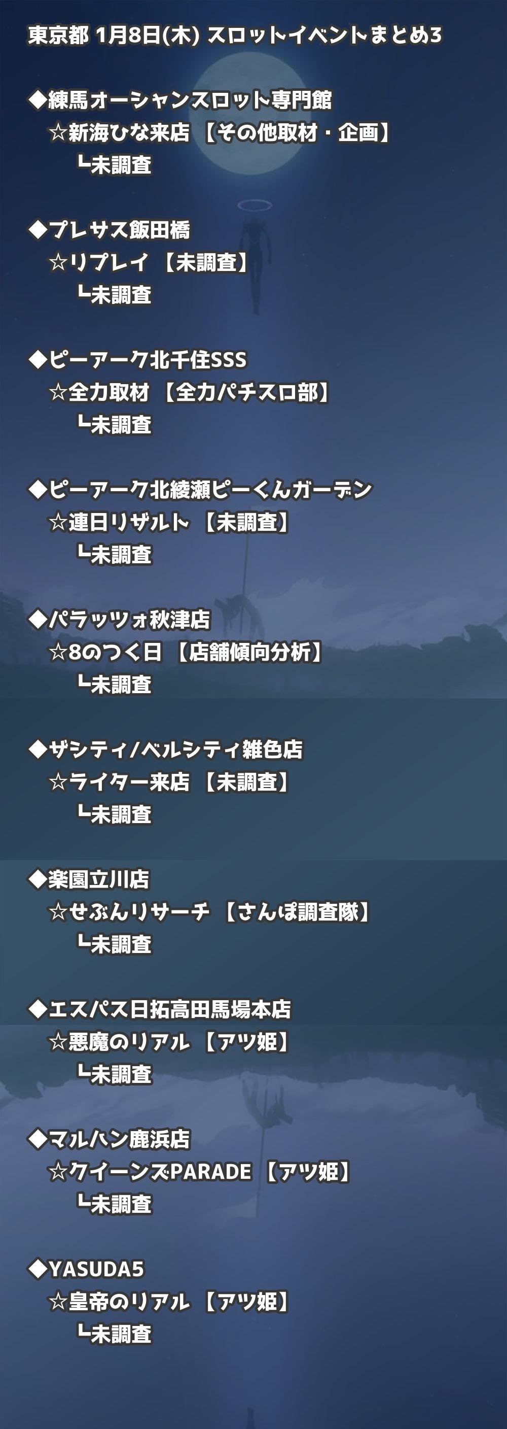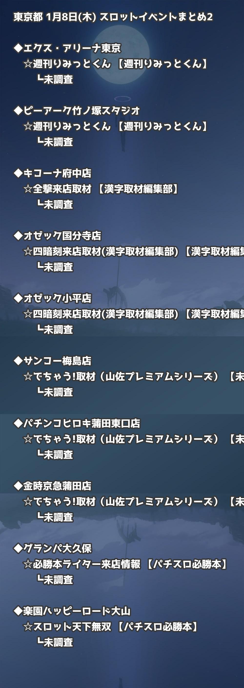 【東京都】1月8日(木) パチンコホールイベント取材まとめ記事です。