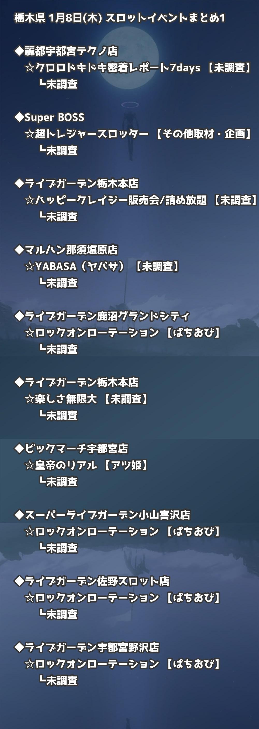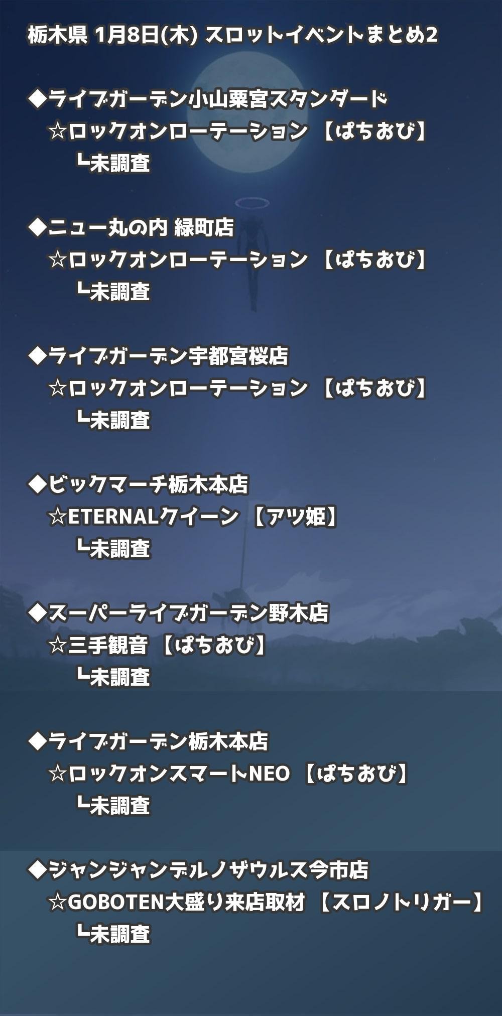 【栃木県】1月8日(木) パチンコホールイベント取材まとめ記事です。