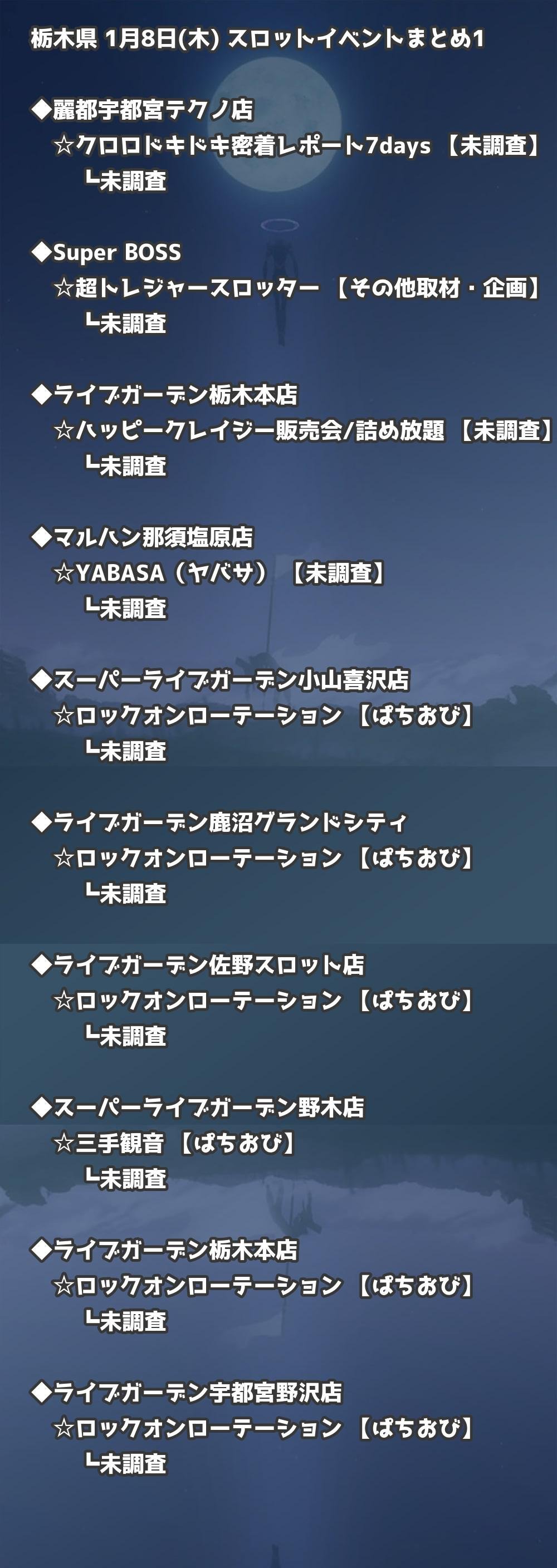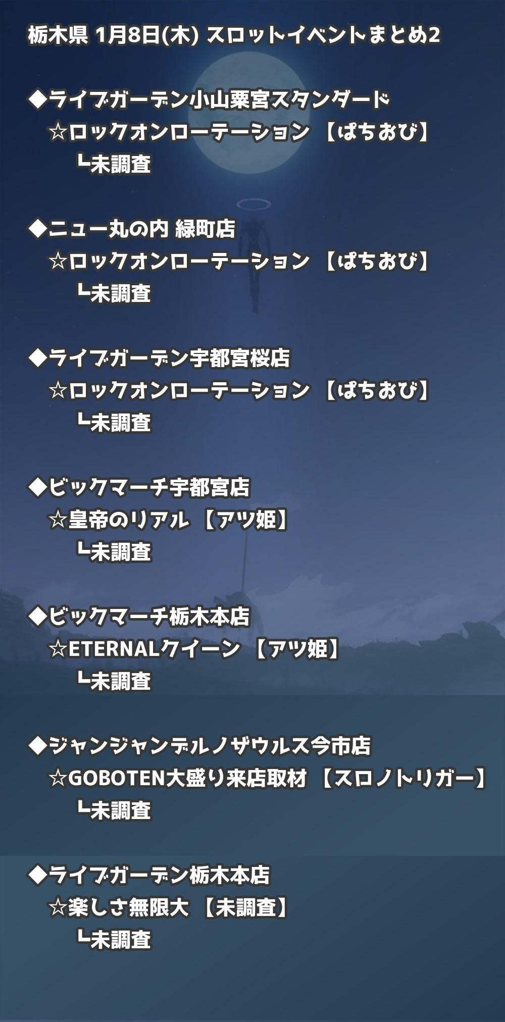 【栃木県】1月8日(木) パチンコホールイベント取材まとめ記事です。