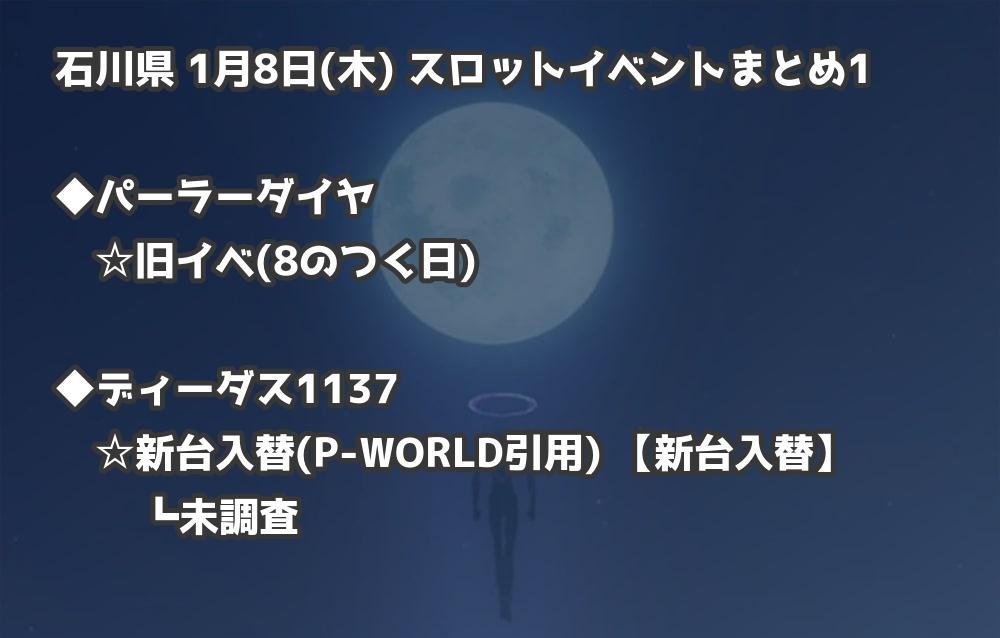 【石川県】1月8日(木) パチンコホールイベント取材まとめ記事です。