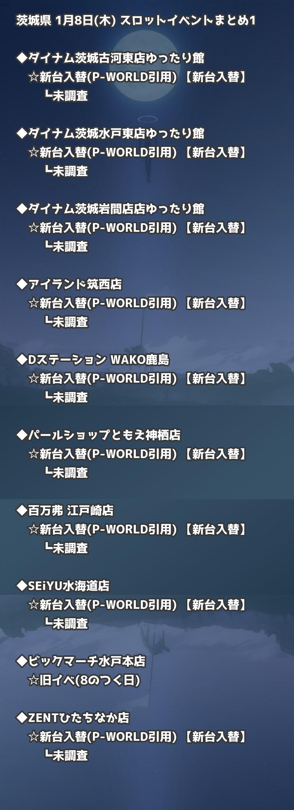 【茨城県】1月8日(木) パチンコホールイベント取材まとめ記事です。